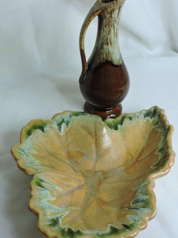 1960s Pottery Vase Mid Century Dalton Pottery Drip Glaze Pitcher Vintage American Pottery Ceramic Decor. Vase is 8.5" tall, leaf pottery is about 11" wide. **Please read Terms and Conditions before placing a bid. Pick up is Saturday, November 30 from 9am to 3pm in Bridgeton, NJ. All sales are final. All sales are as is, where is. Please review all photos. Any props included in photos are not included in listing. All measurements are approximate.
