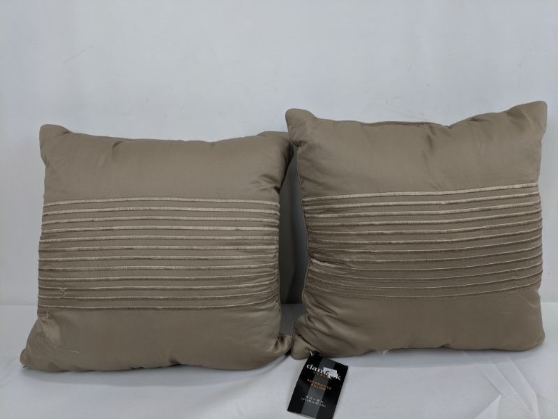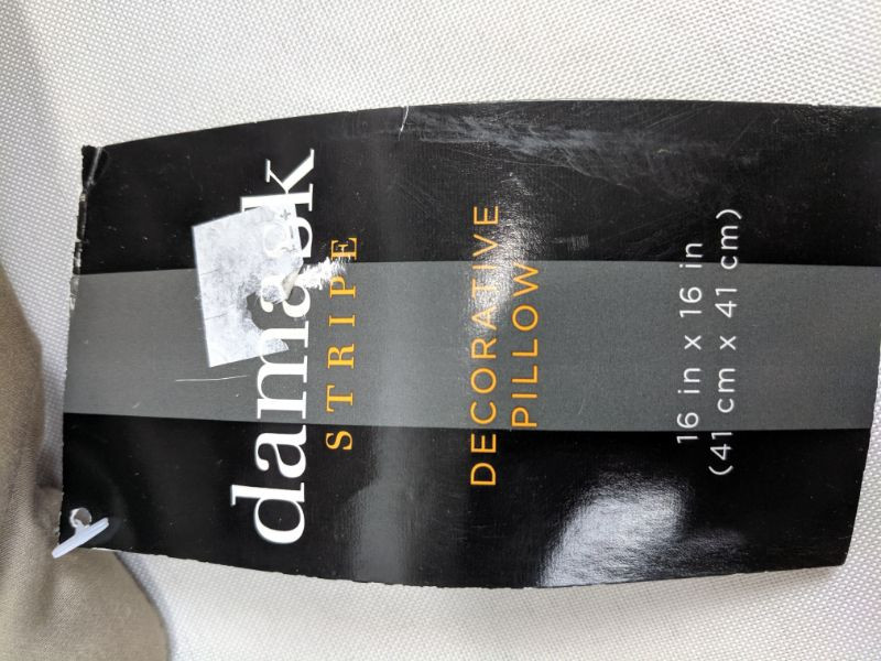 Damask Stripe Decorative Pillow, 16" x 16", Tan, Set of 2 - New