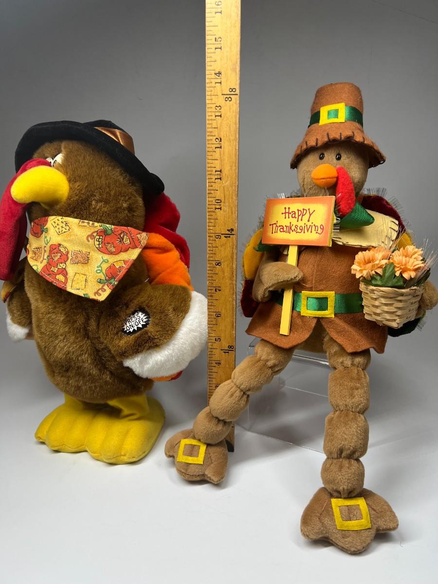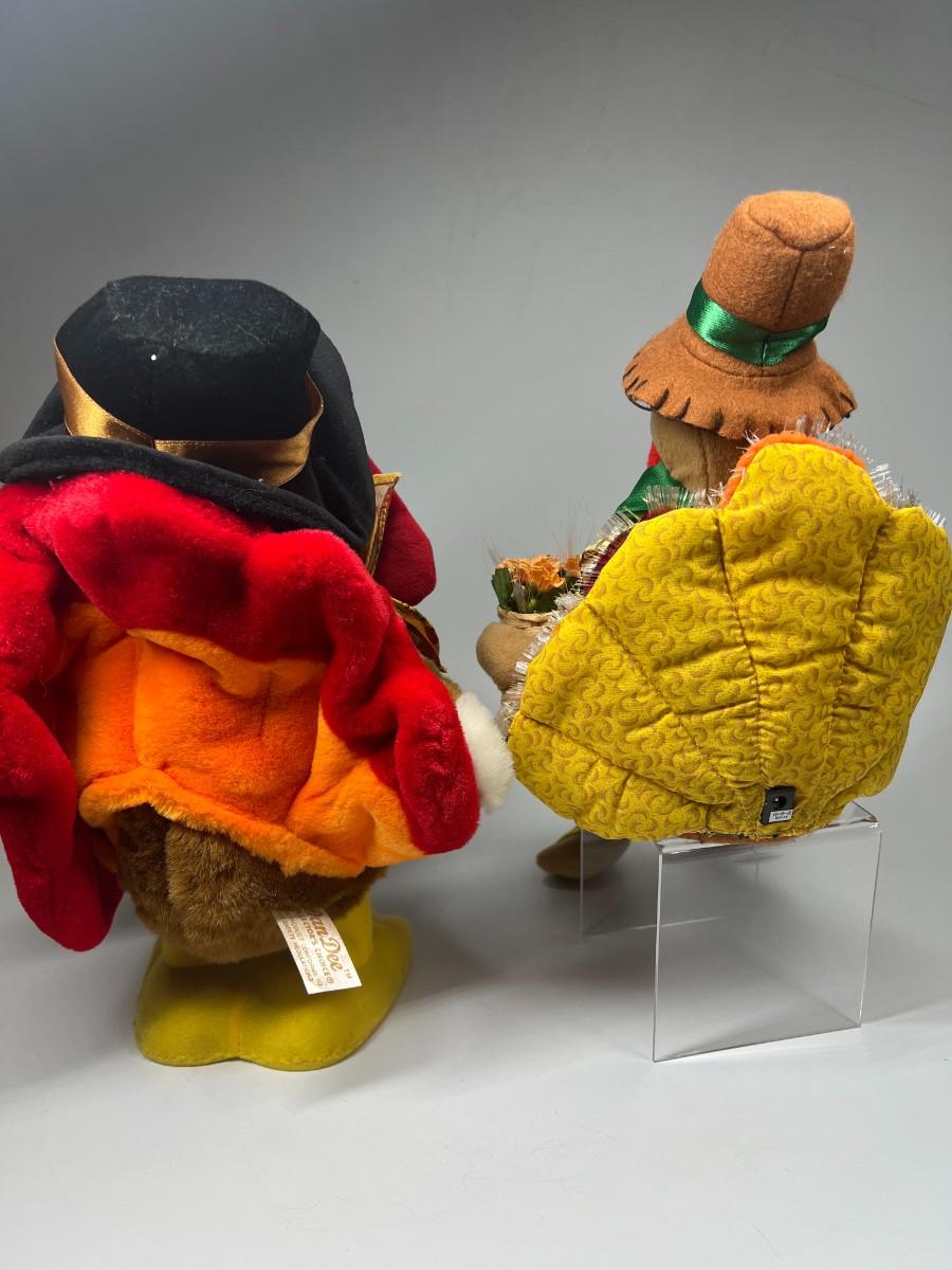 There is no significant rips or tears to either of the turkeys and is in good displayable condition. Check pictures for more details and for sizing.