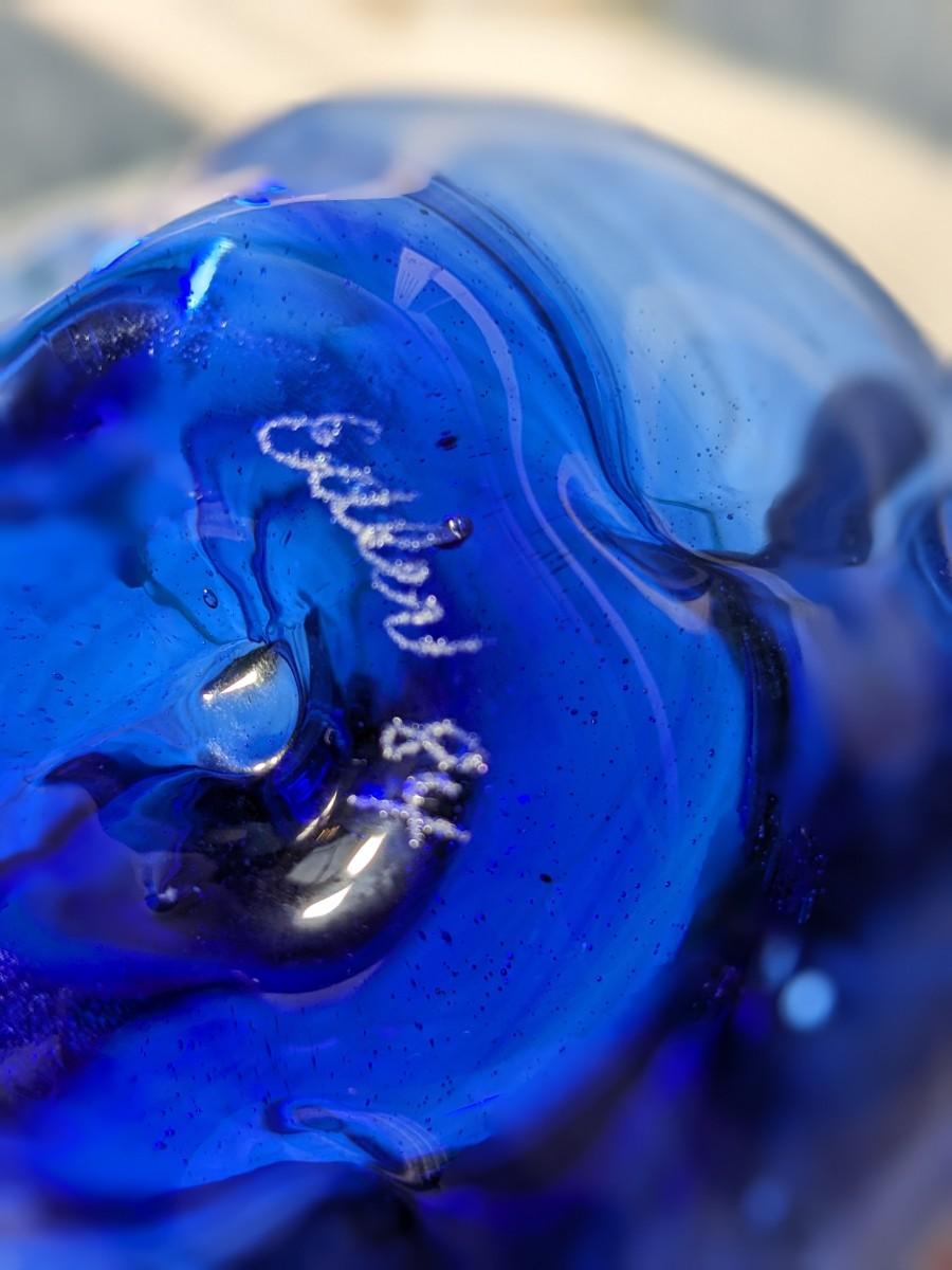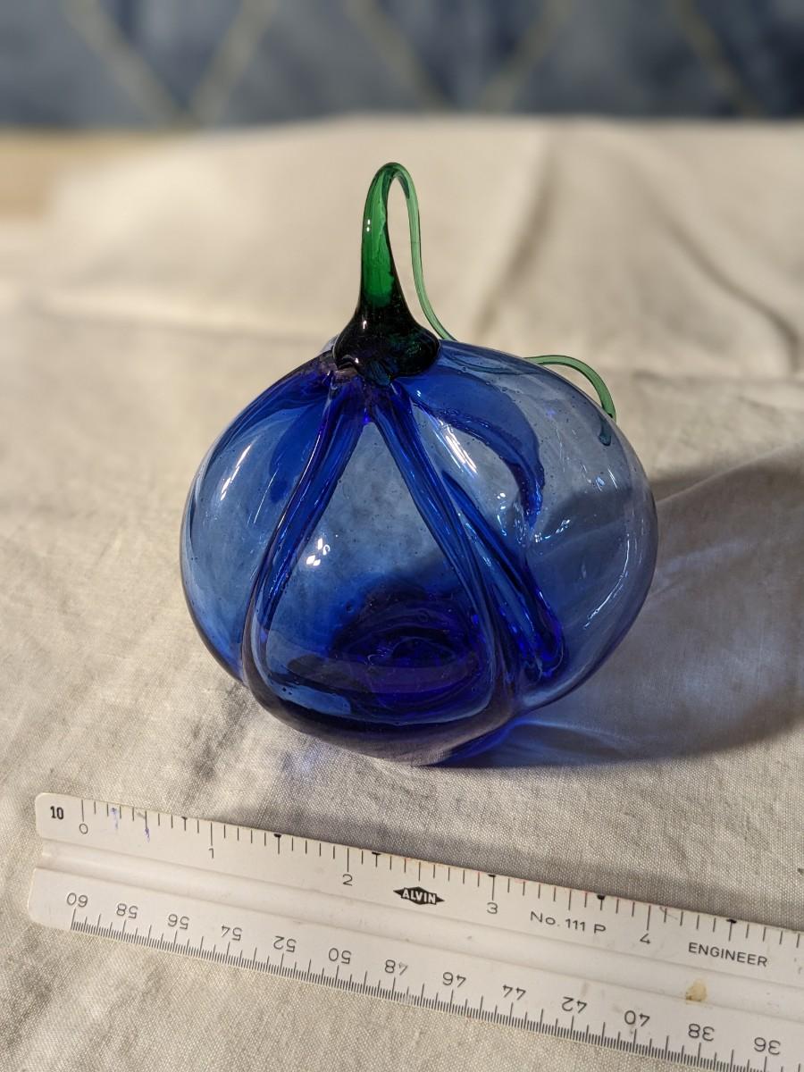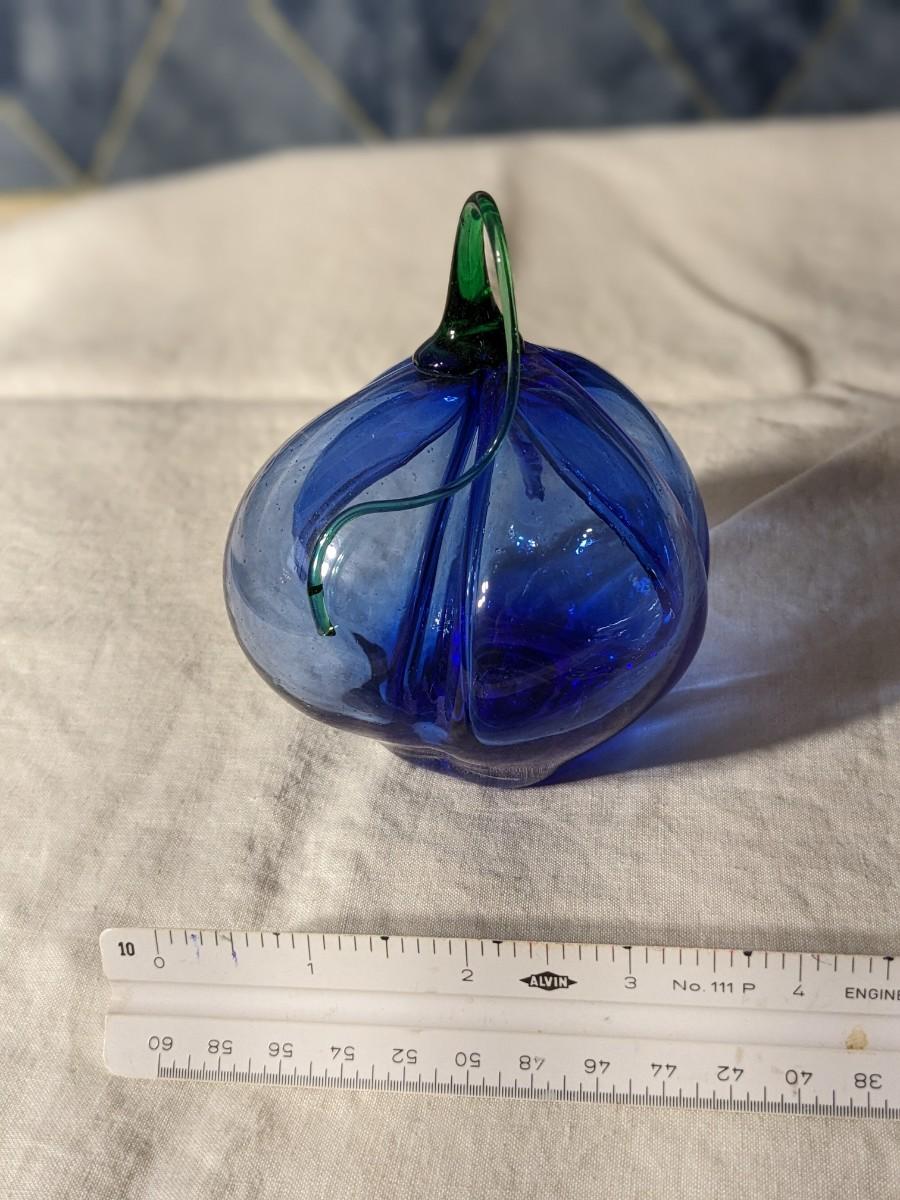 Dan Elder Vintage Blue 4-Lobe Blue Blown Glass Bell Pepper with Green Stem