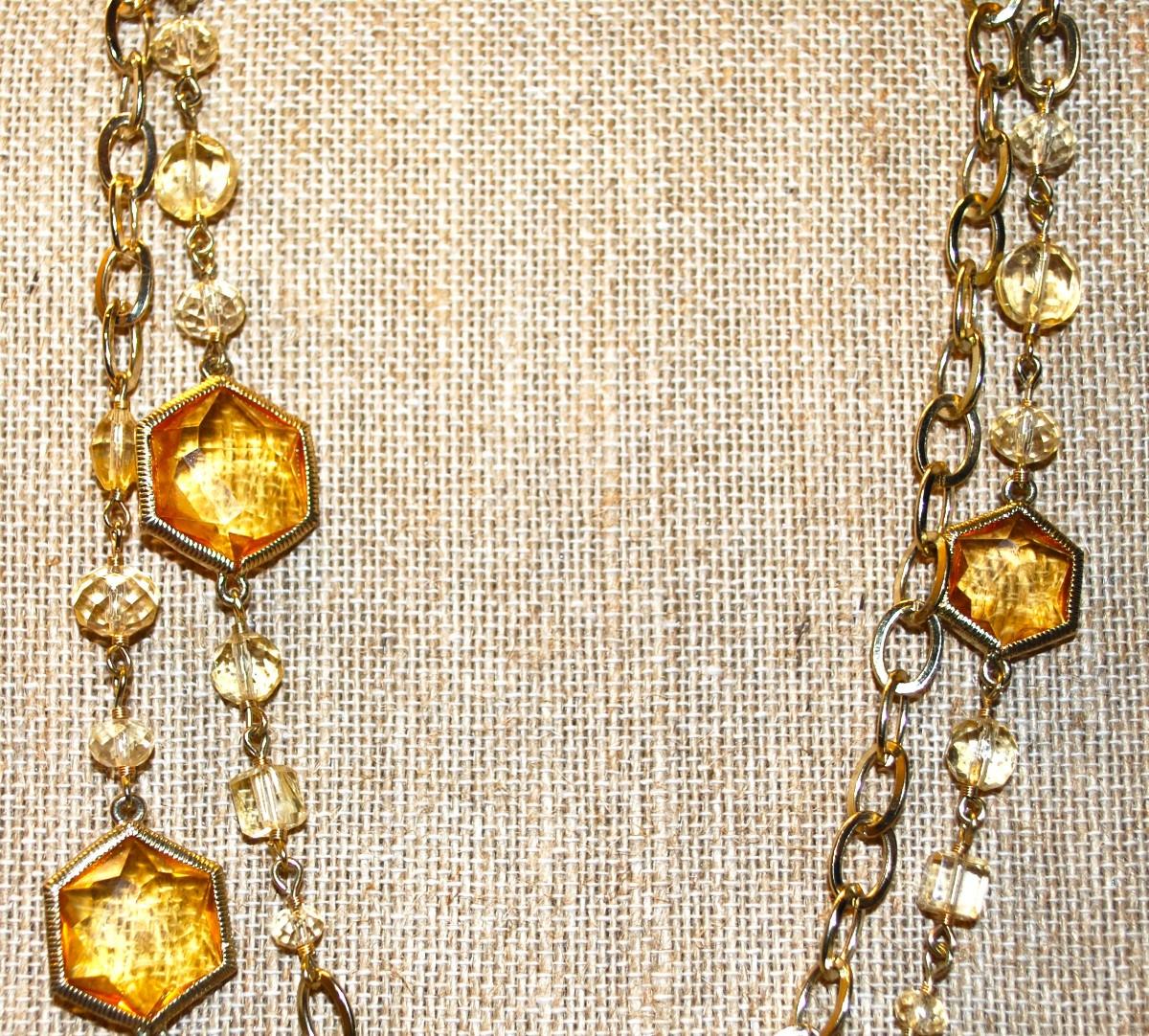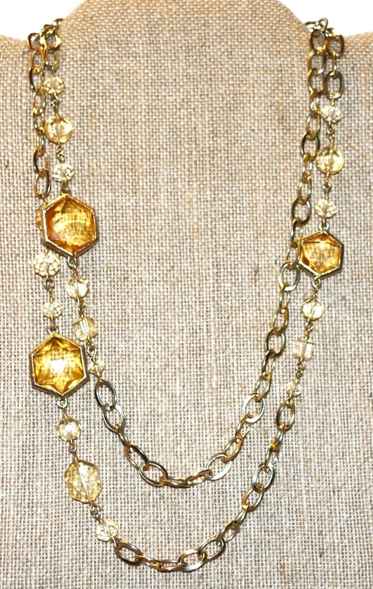 "Dana Kellin" Brand Necklace with Faceted "Gold" Hexagon Accents on a (Wrap-Around) Gold Tone Chain 38" L