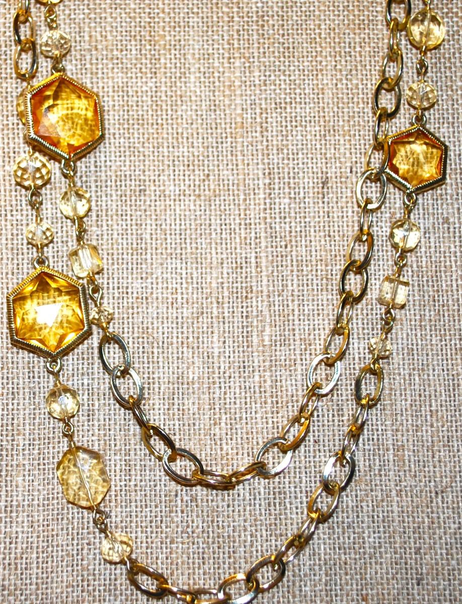 "Dana Kellin" Brand Necklace with Faceted "Gold" Hexagon Accents on a (Wrap-Around) Gold Tone Chain 38" L