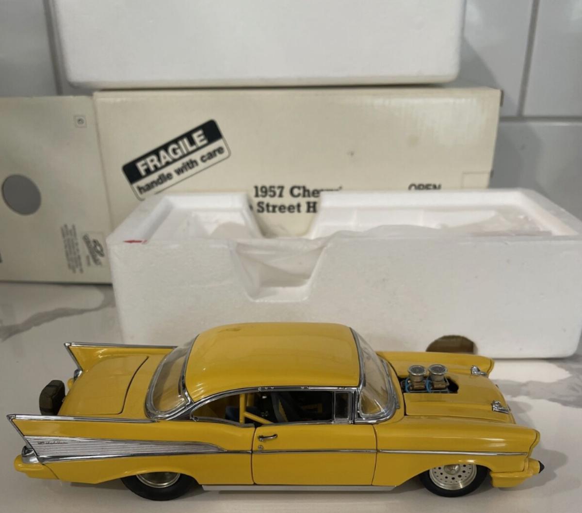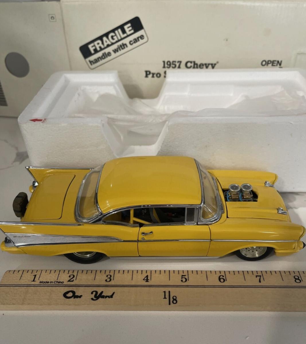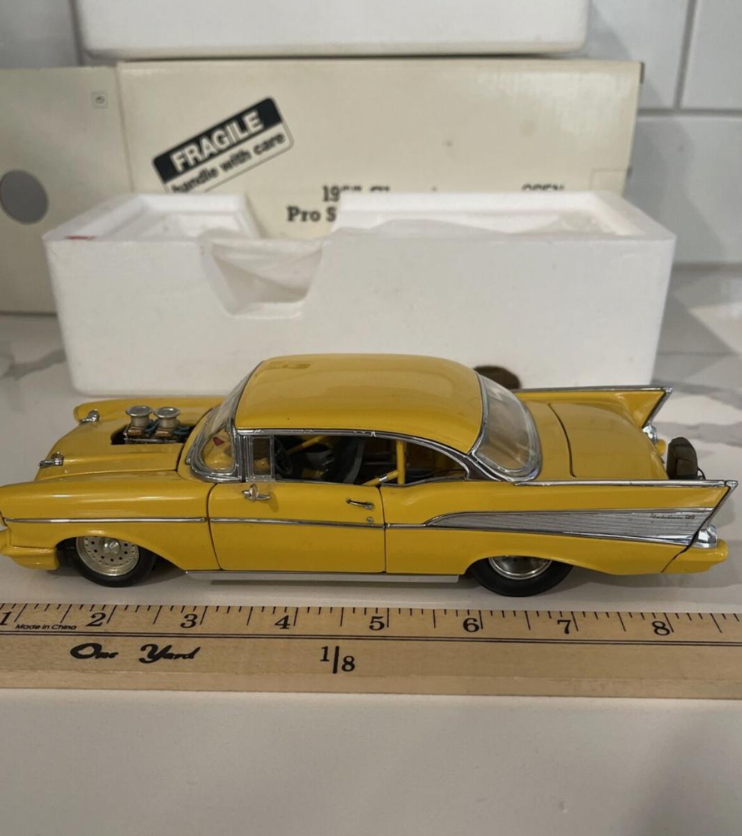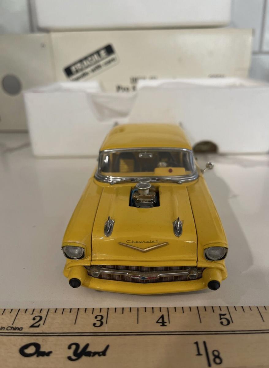 Danbury Mint 1957 Chevy Pro Street Hardtop Yellow Bel Air Diecast 1:24 Drag Car
