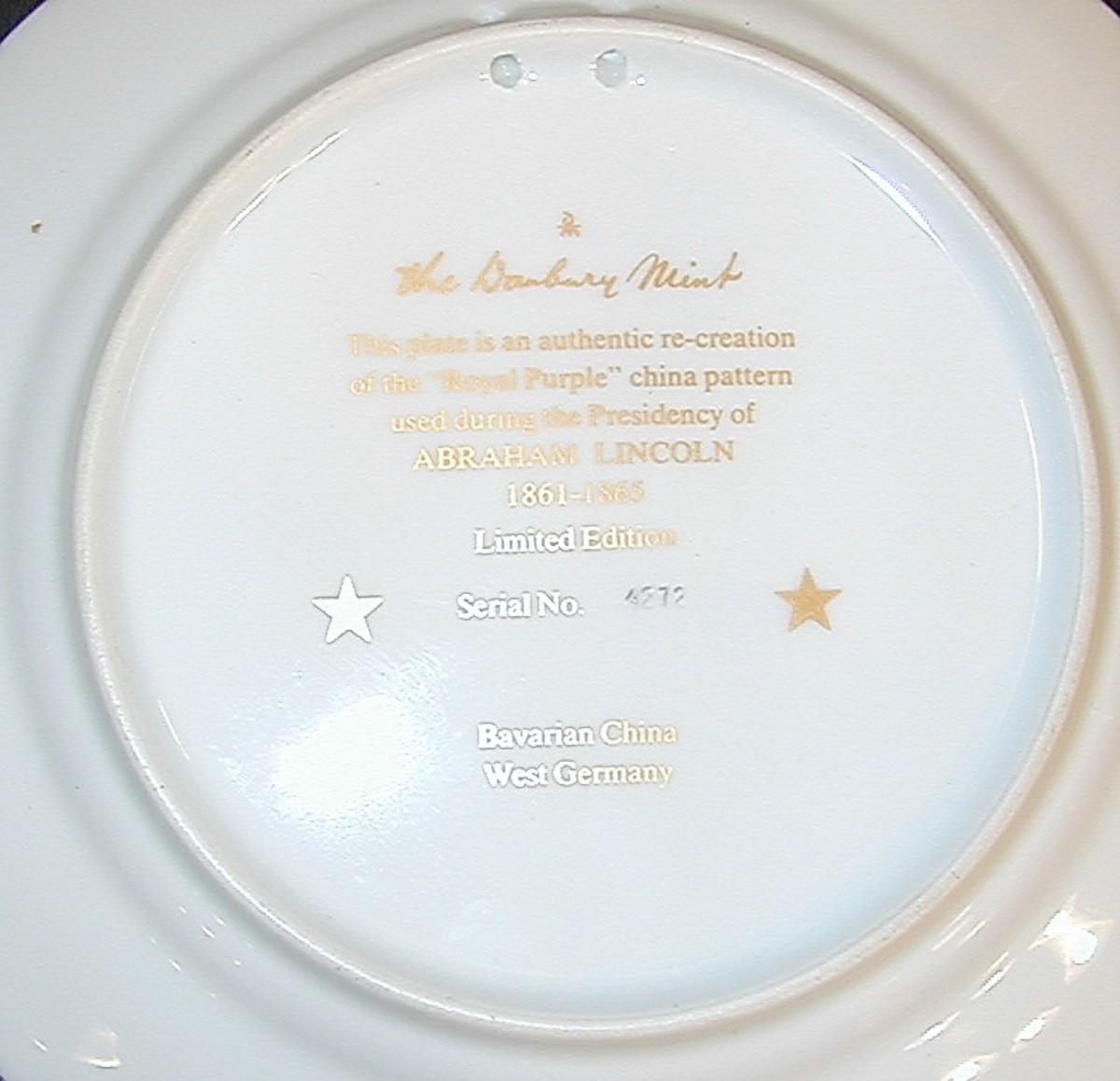 Danbury Mint Abraham Lincoln White House China Plate Eagle Lot 324