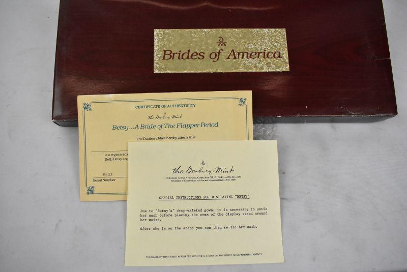 Danbury Mint "Brides of America" Doll with Box, COA, & Stand. Betsy, a Bride of the Flapper Period, Vintage 1985