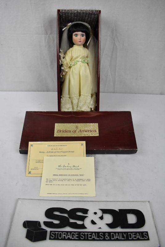 Danbury Mint "Brides of America" Doll w/ Box, COA, & Stand. Betsy, Vintage 1985