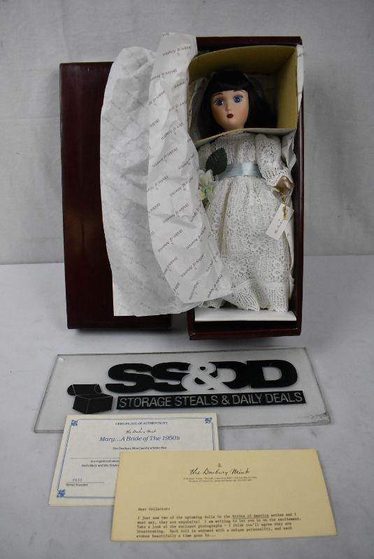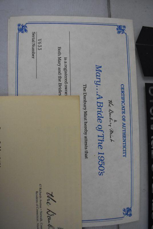 Danbury Mint "Brides of America" Doll with Box & COA & Stand. Mary, a Bride of the 1950s, Vintage 1986