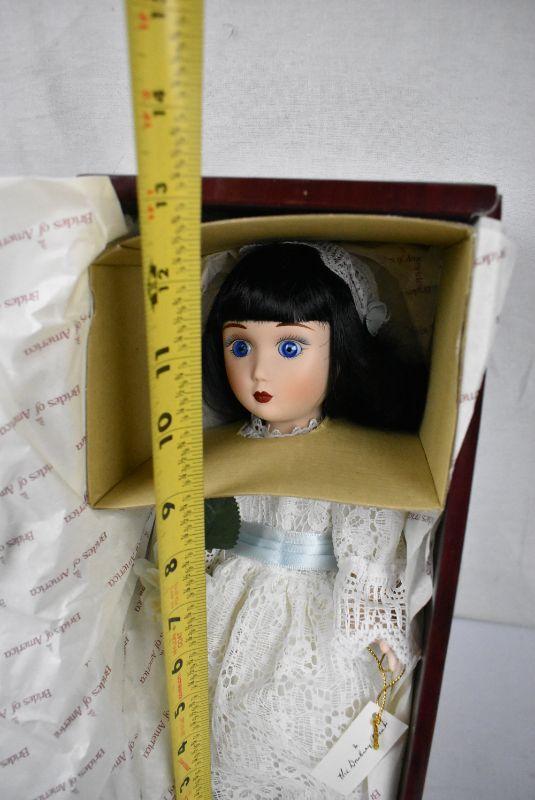 Danbury Mint "Brides of America" Doll w/ Box & COA & Stand. Mary, Vintage 1986