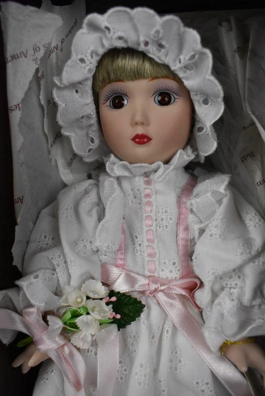 Danbury Mint "Brides of America" Doll w/ Box, COA, & Stand. Sarah, Vintage 1986