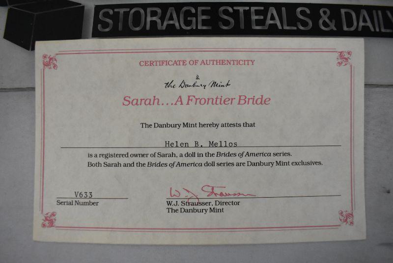 Danbury Mint "Brides of America" Doll with Box, COA, & Stand. Sarah, a Frontier Bride, Vintage 1986