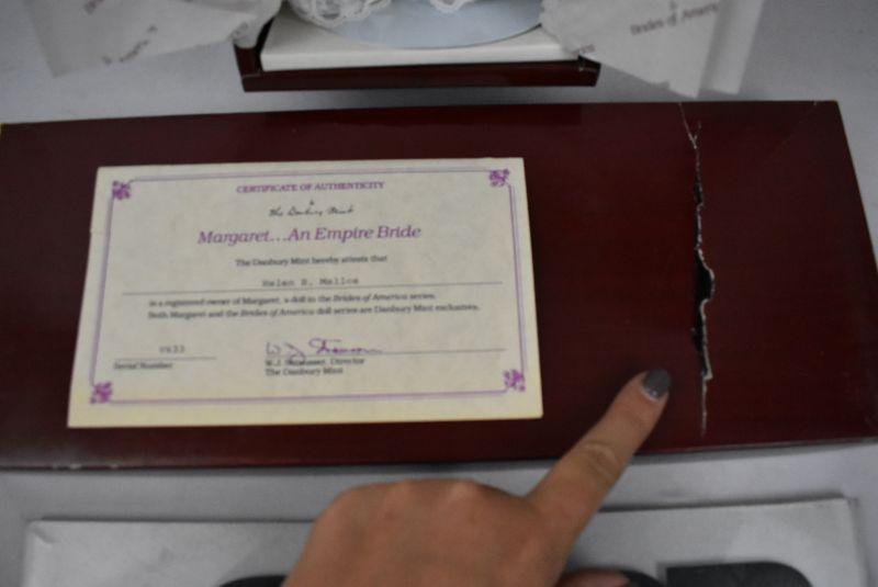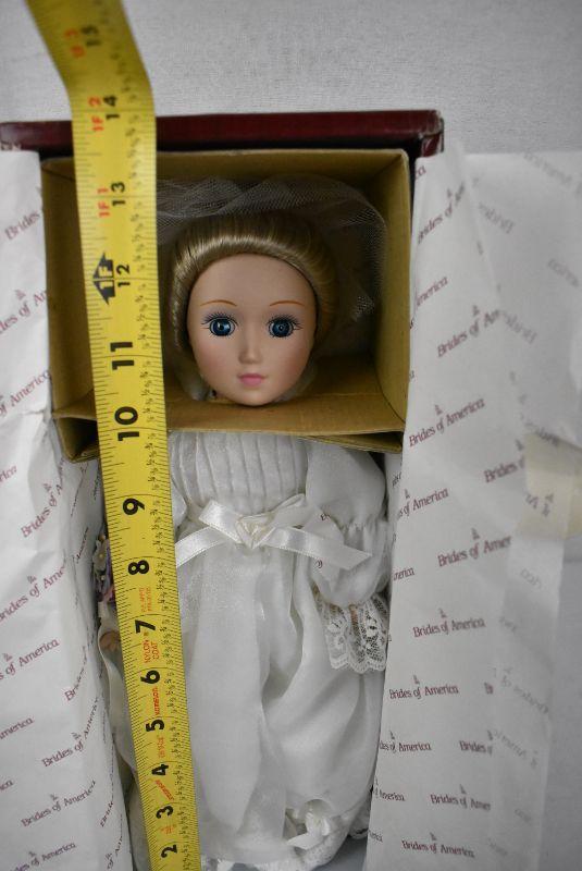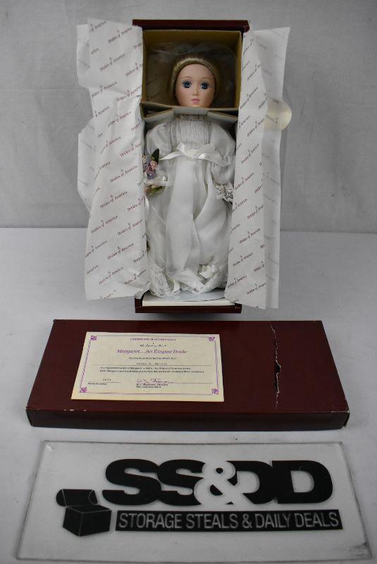 Danbury Mint "Brides of America" Doll w/ Box, COA, & Stand. Margaret 1986