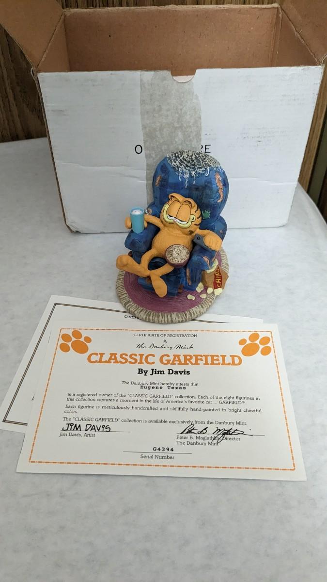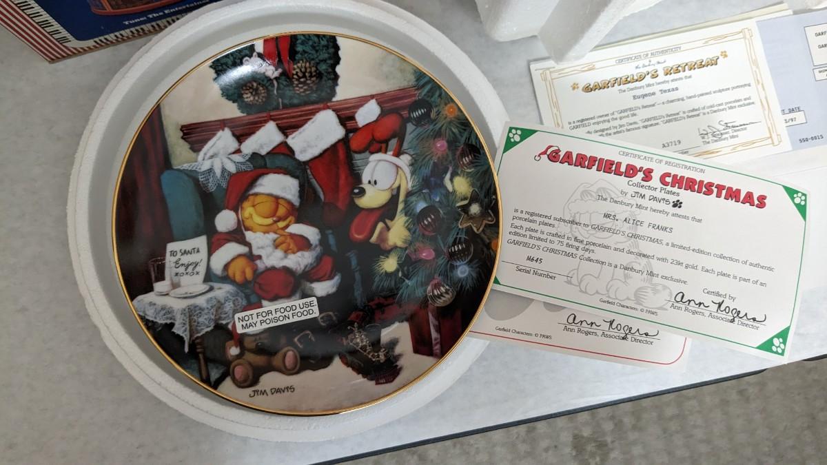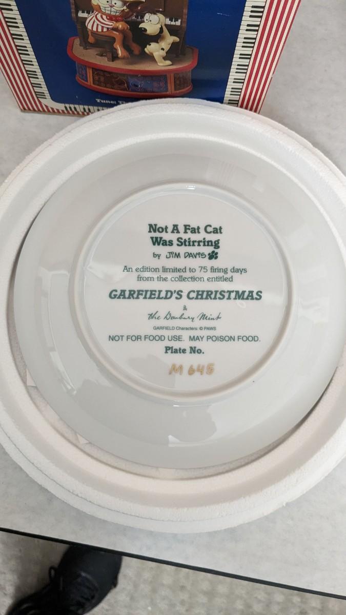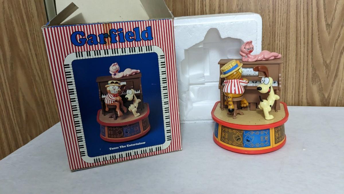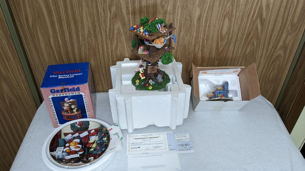 includes 3 Danbury pieces, one titled Garfield's Backyard/Retreat, Garfield Christmas plate, and Classic Garfield, all with COA's. Also includes music box that plays "The Entertainer" with original box. Fun collectibles in this one! bdrm2