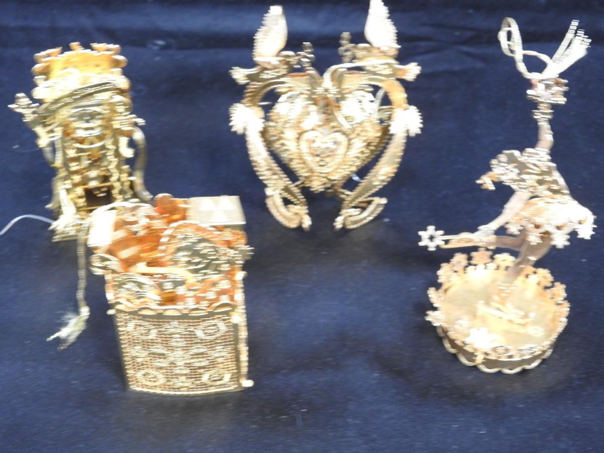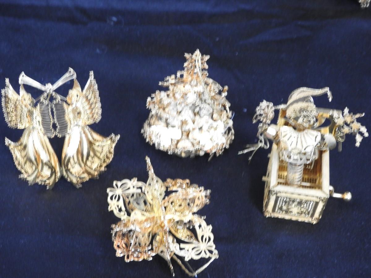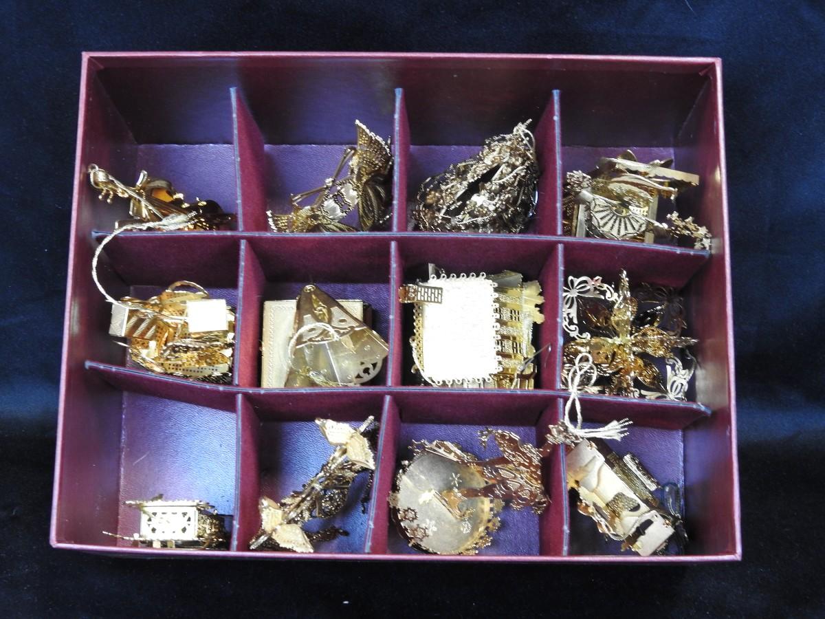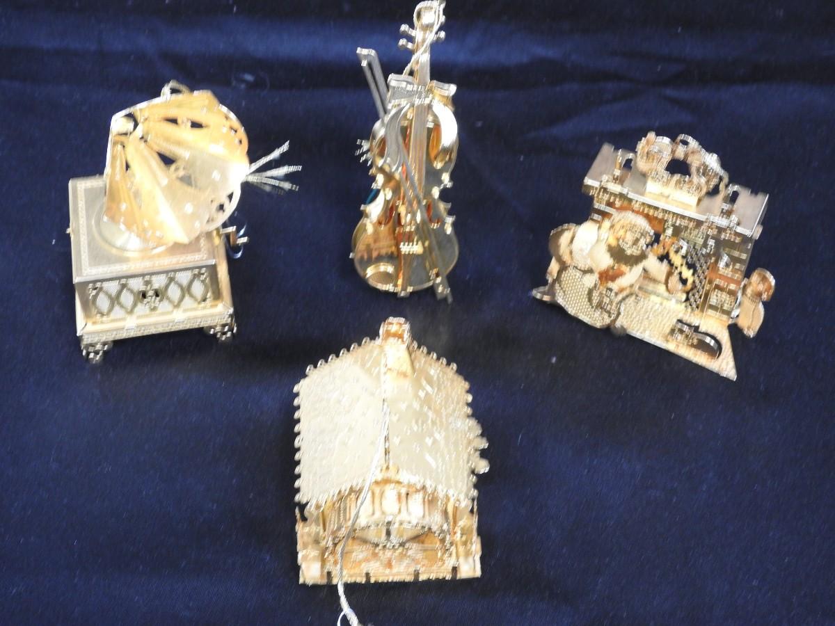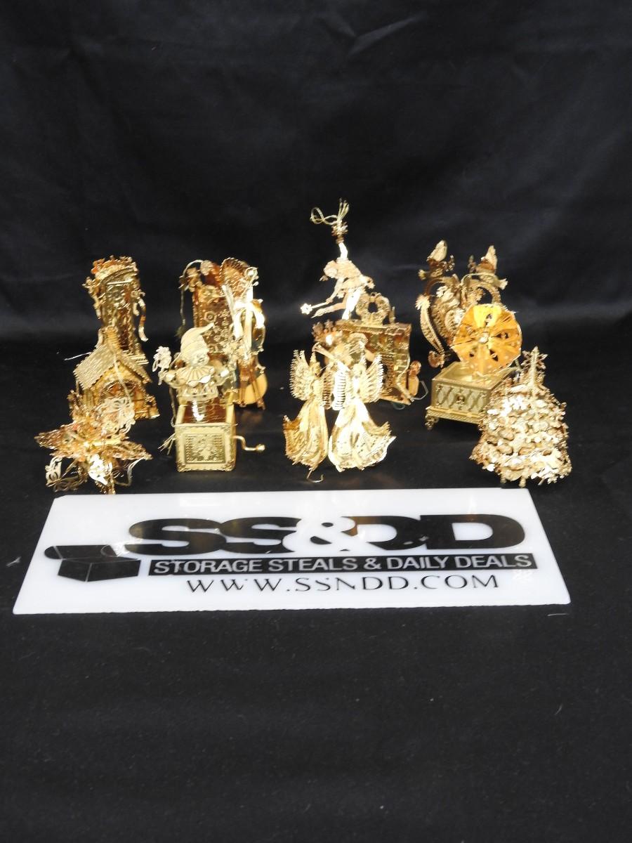 Danbury Mint Gold-Toned Christmas 12 Ornament Collection, Thin Metal: Ballerina, Clock, Tree, Angels, etc