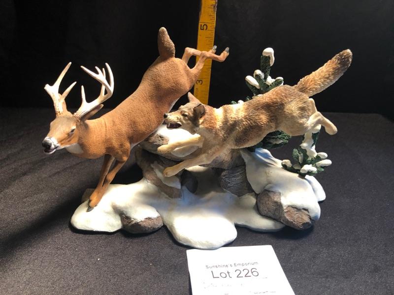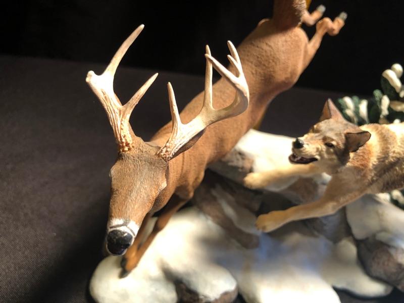 Danbury Mint - Nick Bibby - "Winter Chase" Figurine - Deer looks to have one broken antler - Lot 226