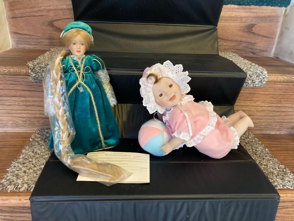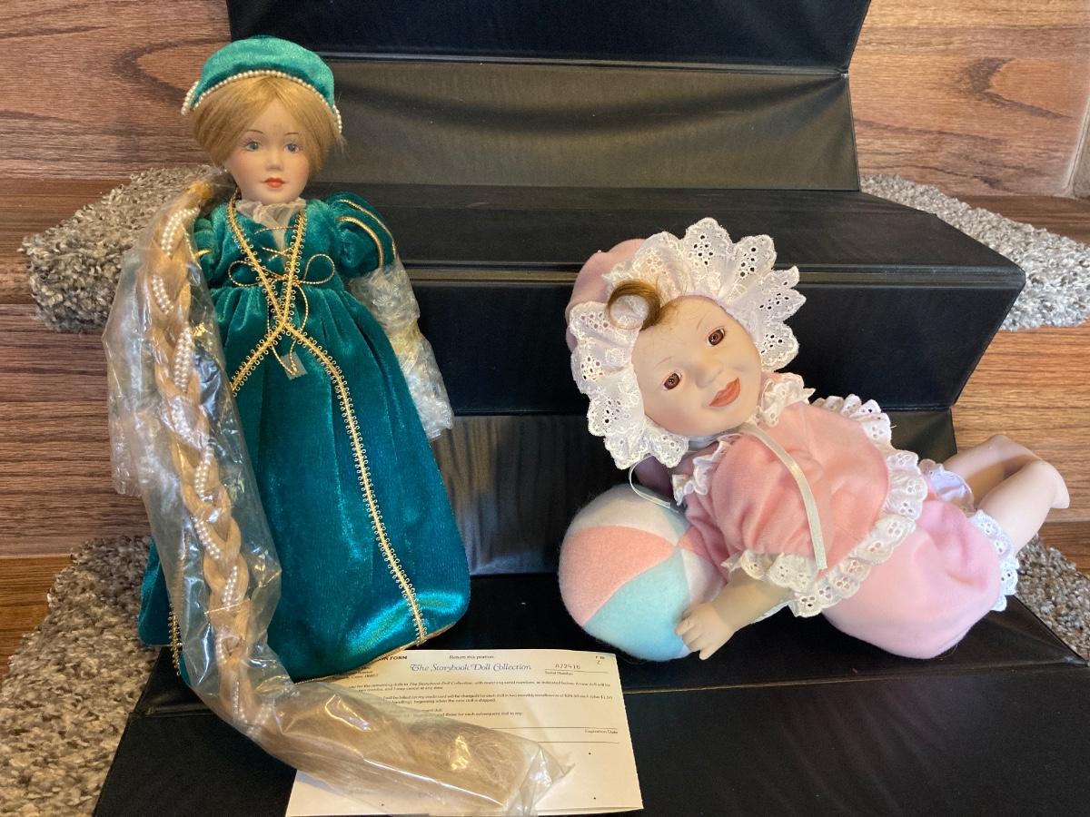 DANBURY MINT STORYBOOK RAPUNZEL DOLL AND PORCELAIN BABY JESSICA