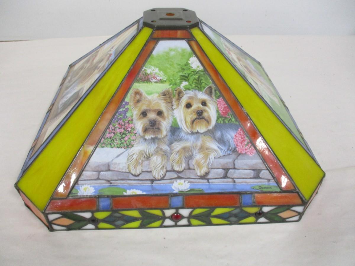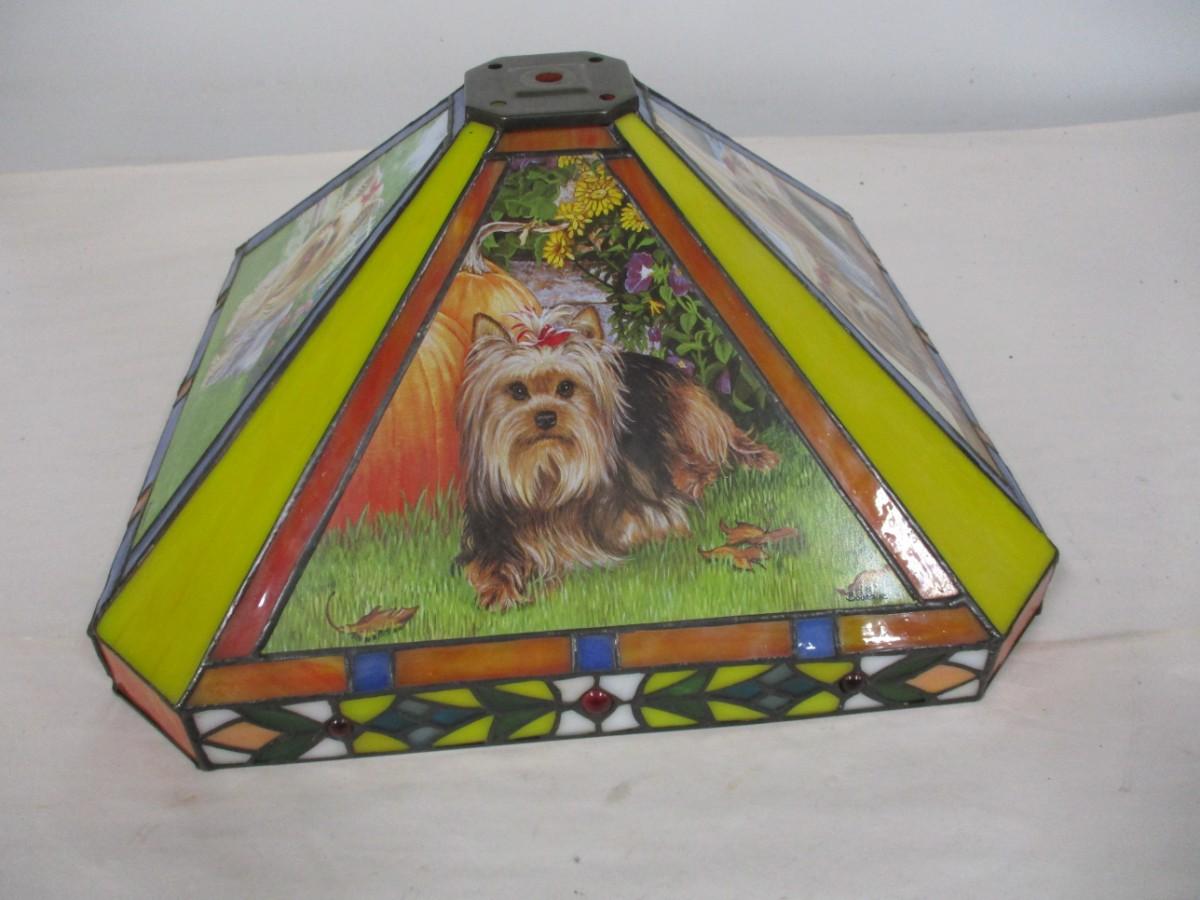 Danbury Mint Yorkie Stained Glass Lamp Tiffany Style Shade