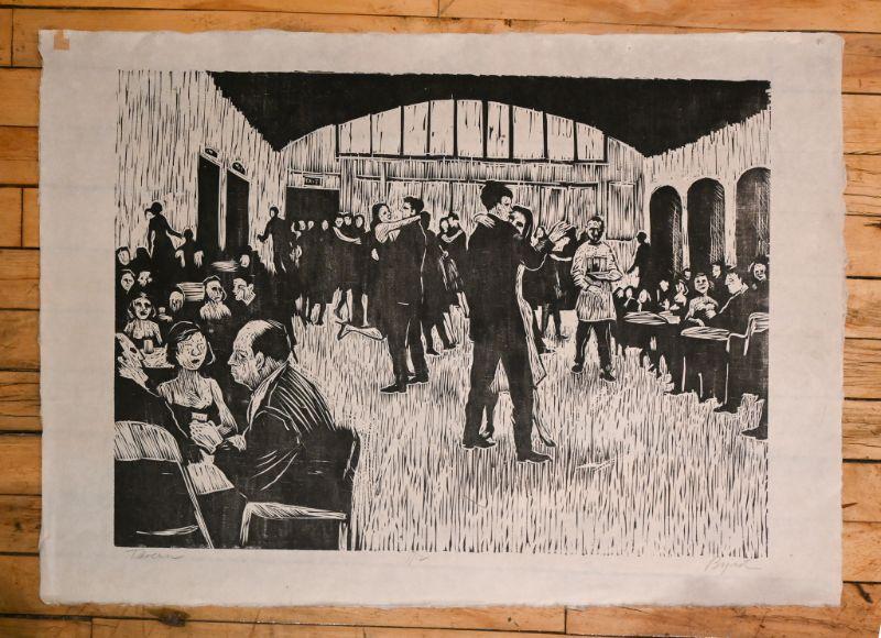 A dance floor by artist Gibson Byrd (American, 1923-2002). Lithograph. Approx. 29.5" x 21".