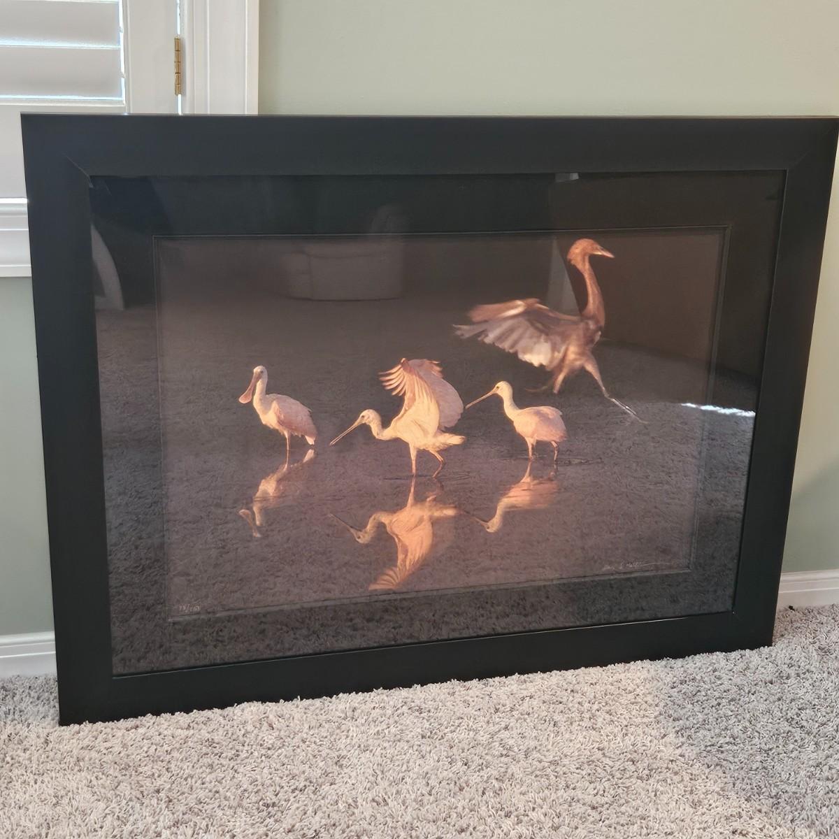 A signed and numbered framed photograph by Alan S. Maltz titled "Dance of Dawn". It is framed in a wooden black frame with a single mat, an interior filet and plexiglass. It measures approximately 41" x 31"H. Shipping available