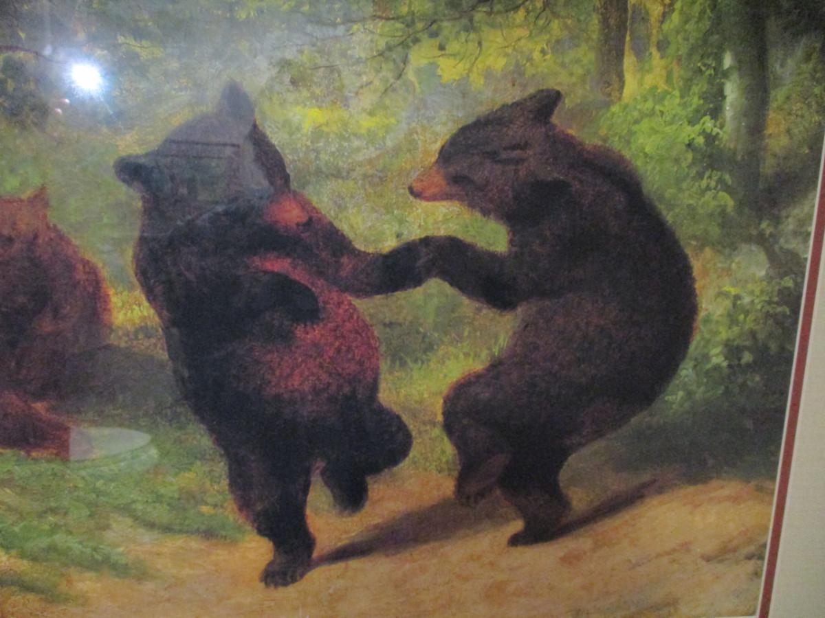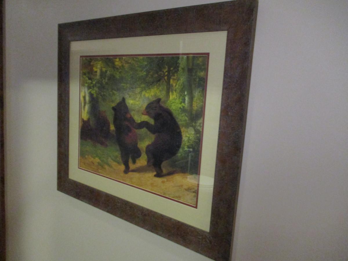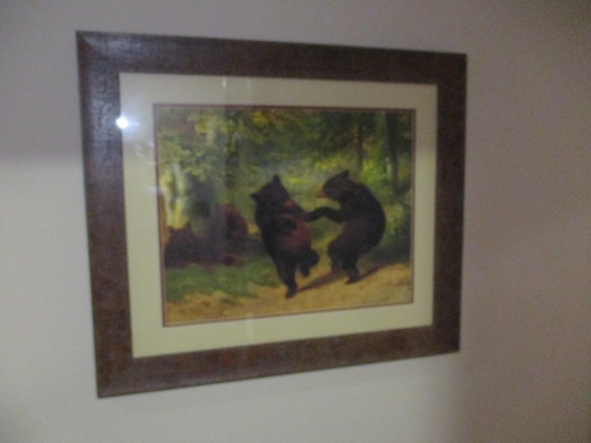 Dancing Bears- Wall Art with Rustic Wood Frame Under Glass
