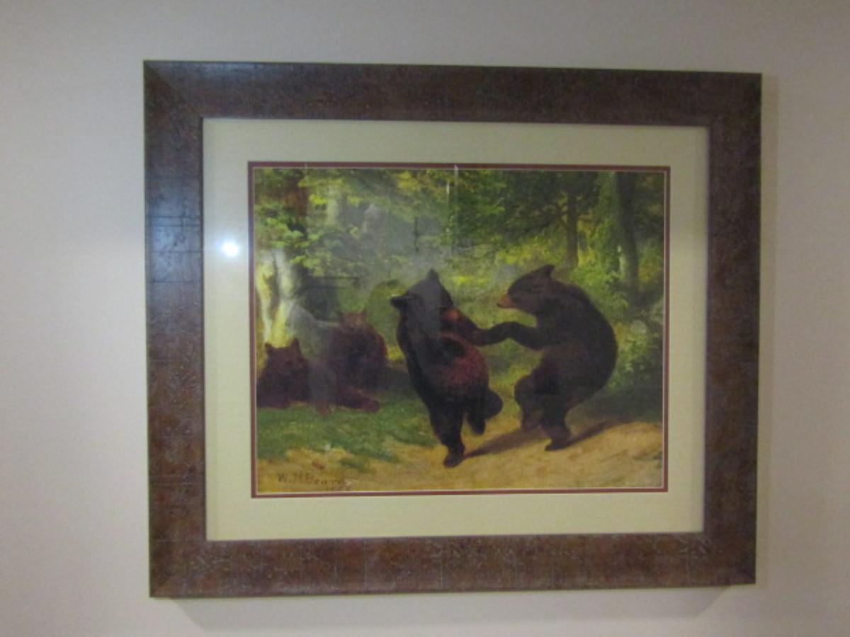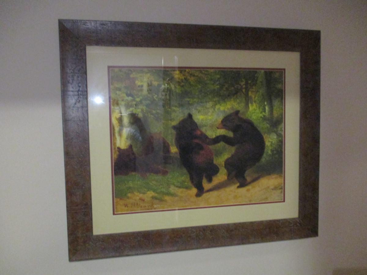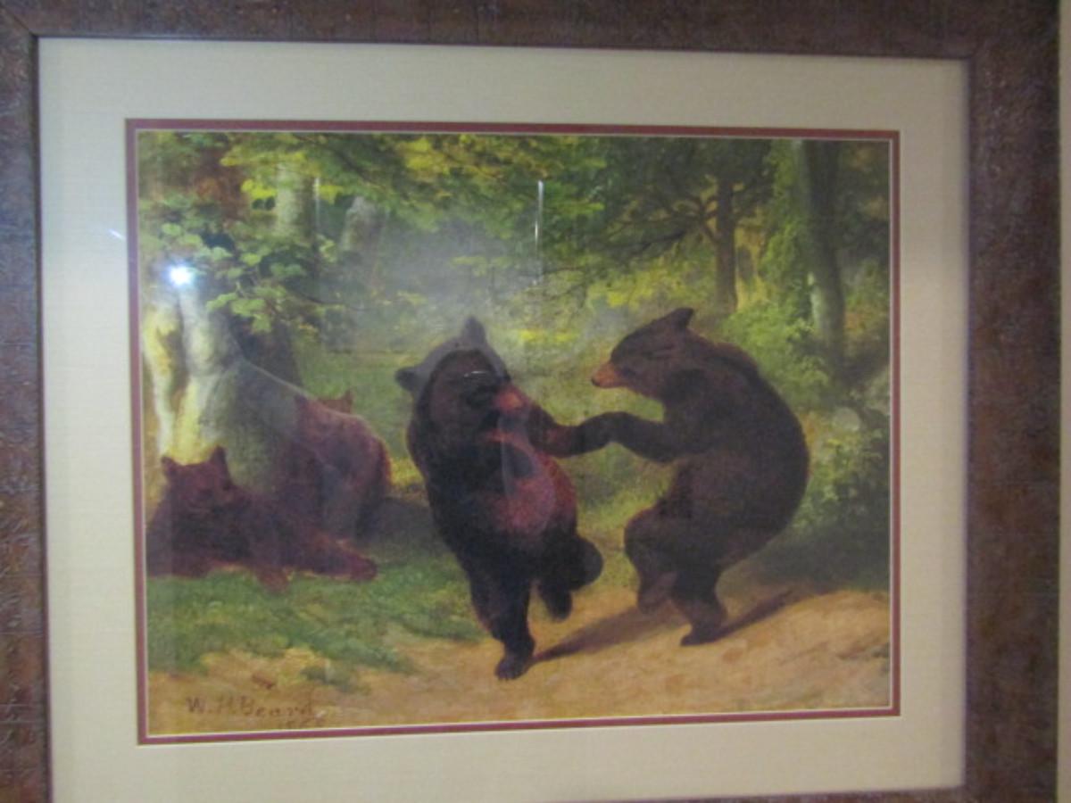 Dancing Bears- Wall Art with Rustic Wood Frame Under Glass