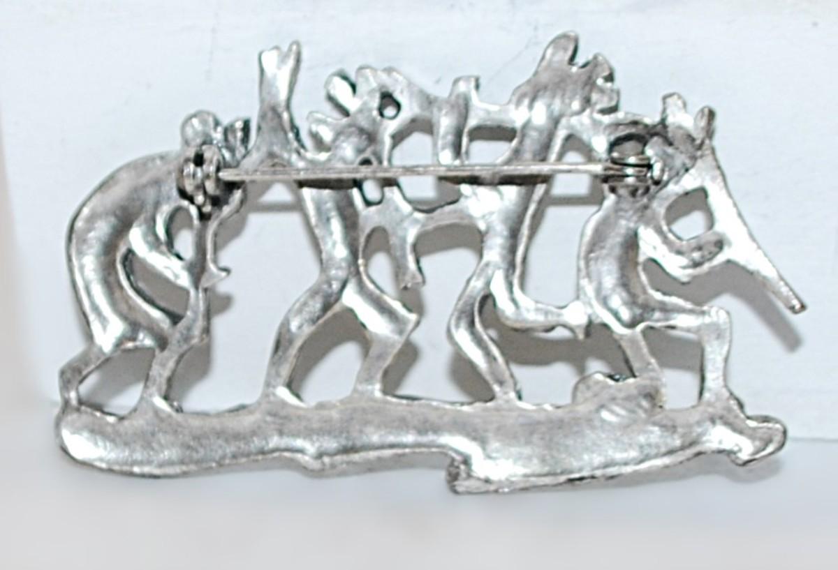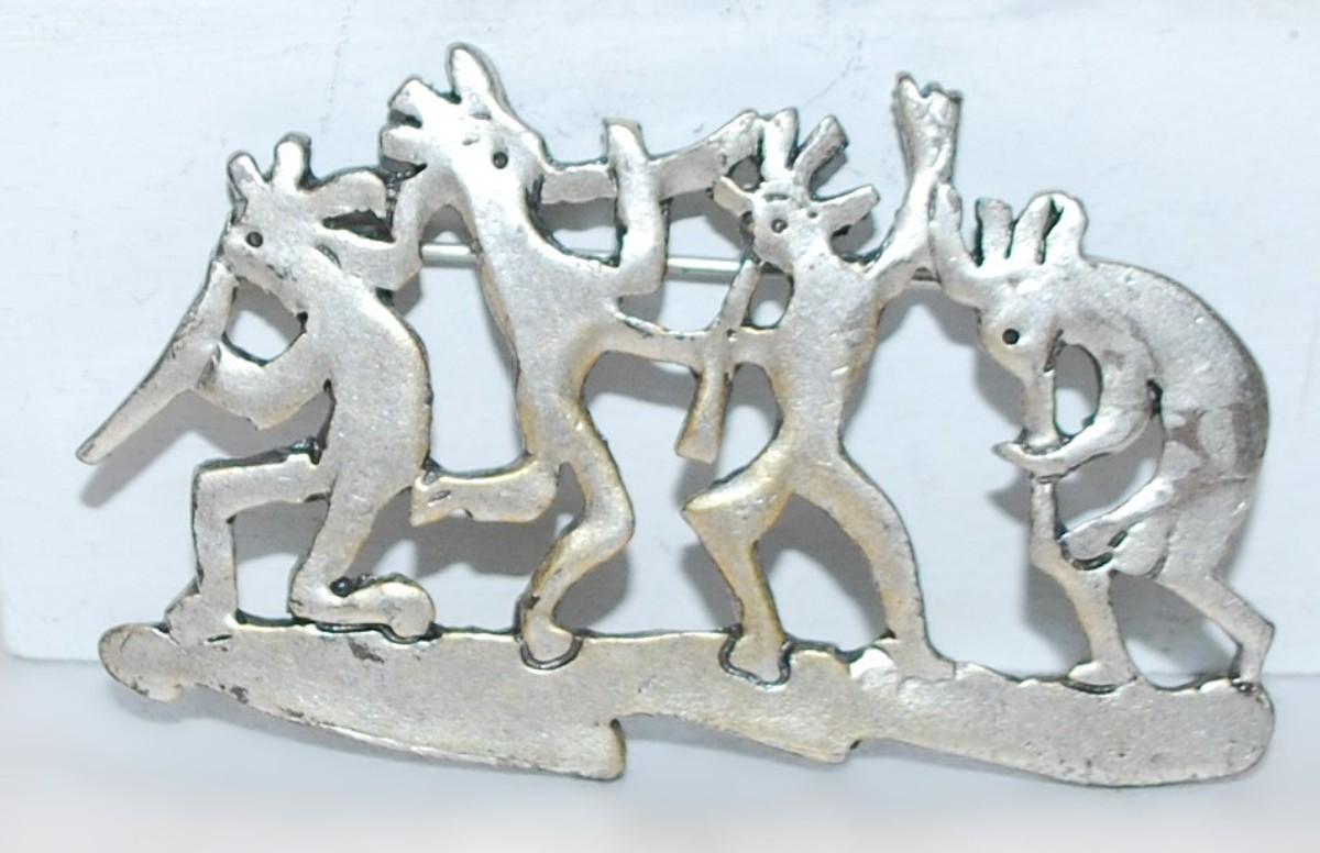 DANCING "KOKOPELLI" GROUP BROOCH (2½" x 1½") on a Silver Tone Setting