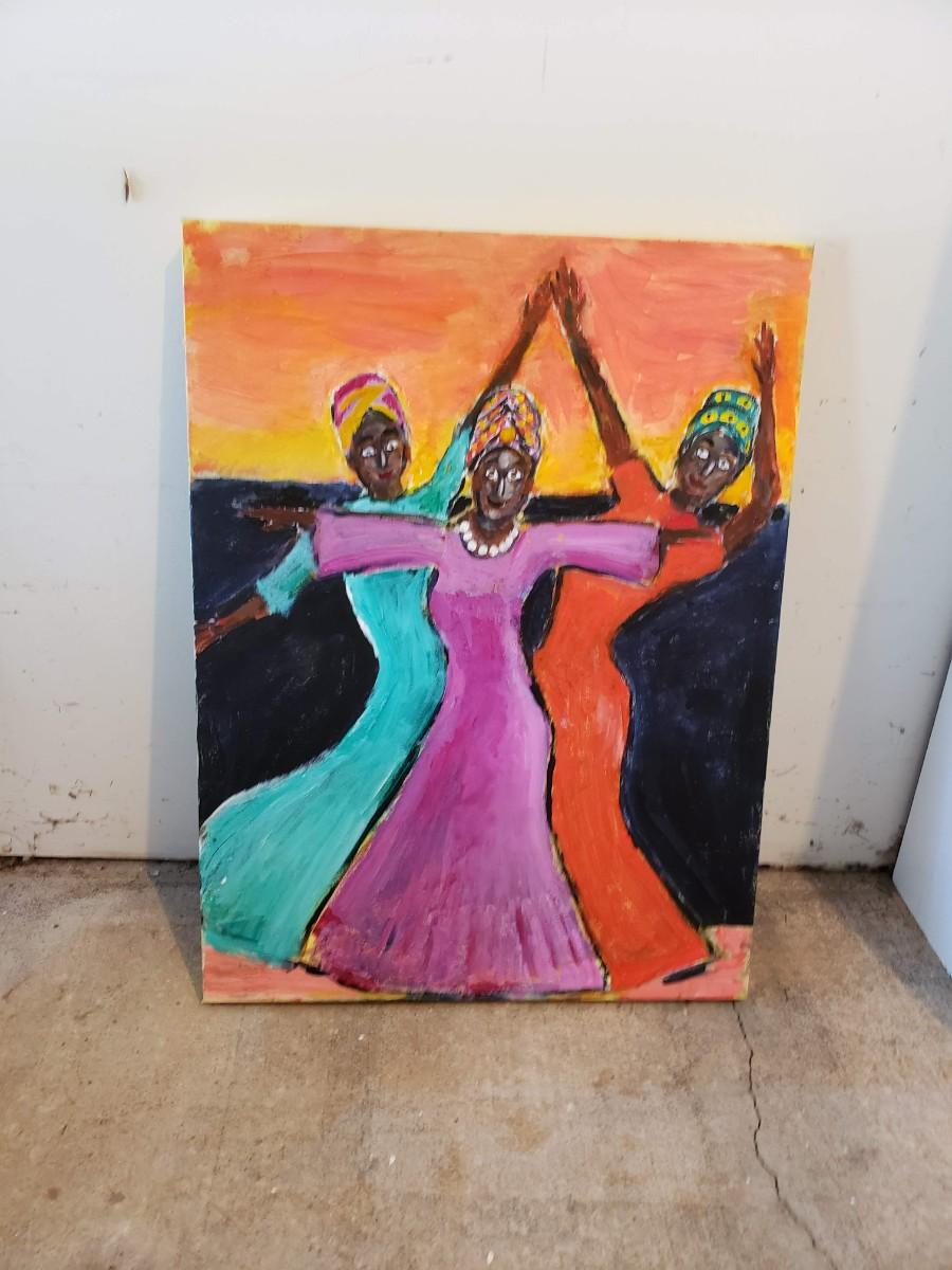 Dancing ladies painted on canvas 18"x24"