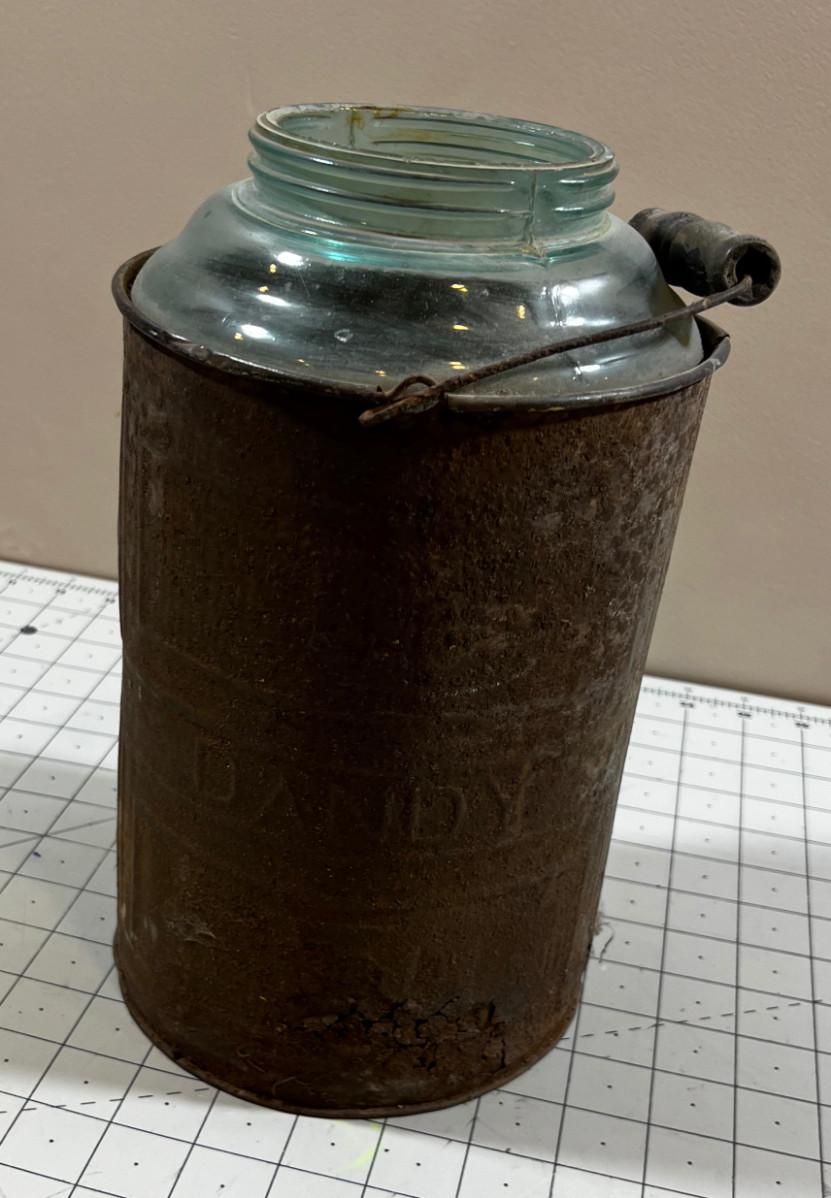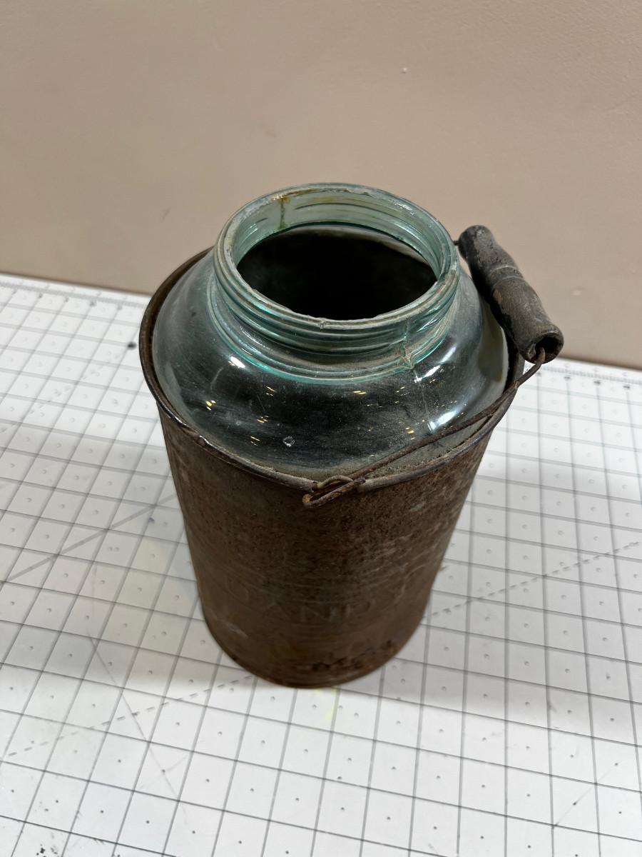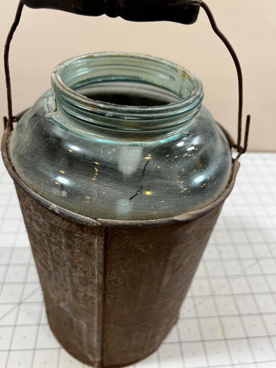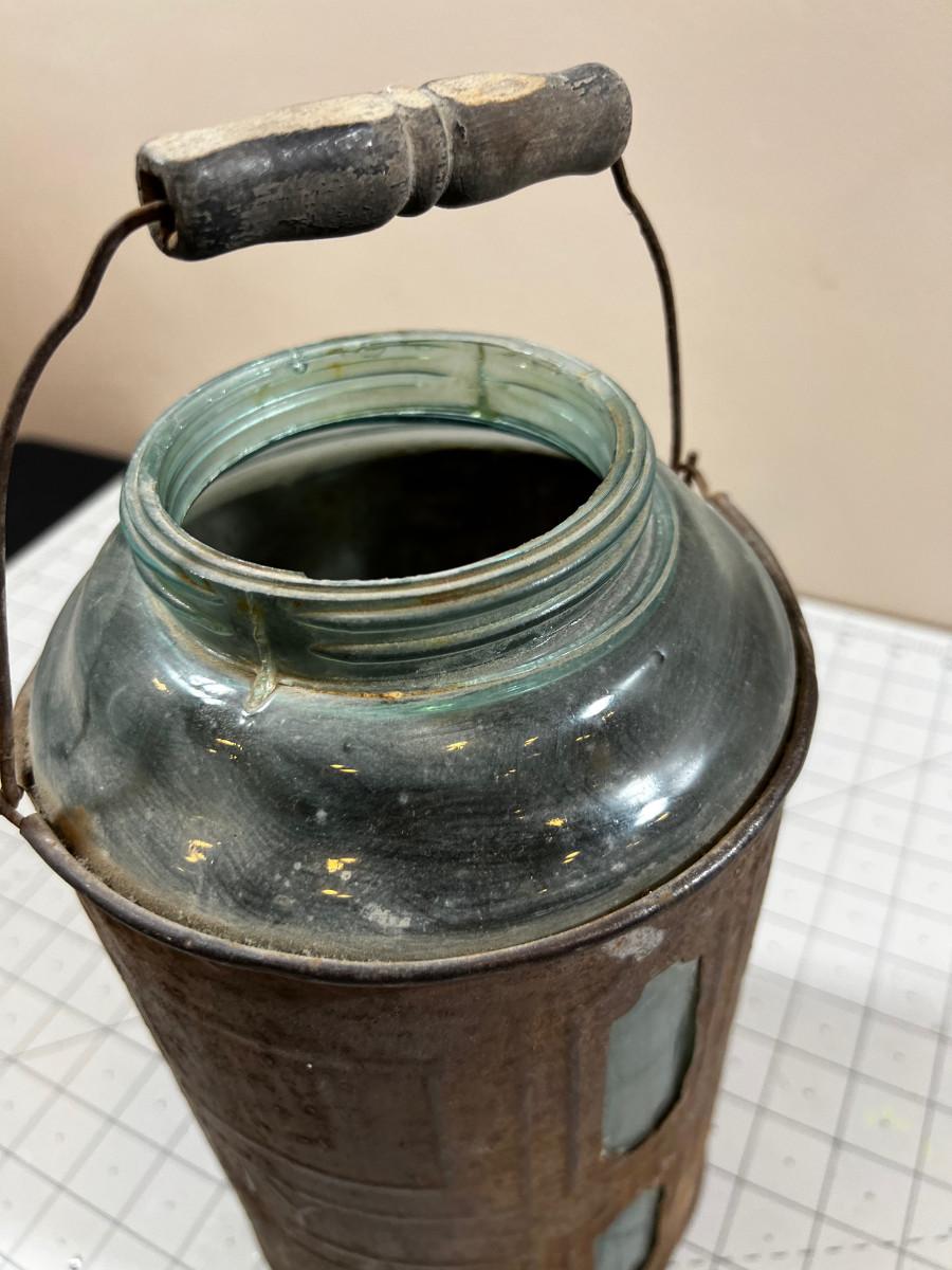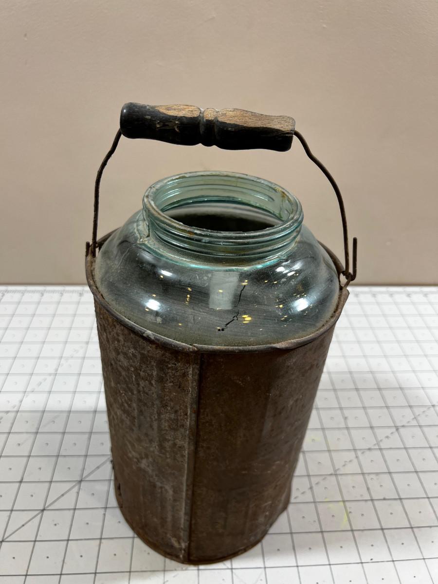Antique Tin Lining with Glass Insert and wood Handle ! NEAT! Never scene one of these before!