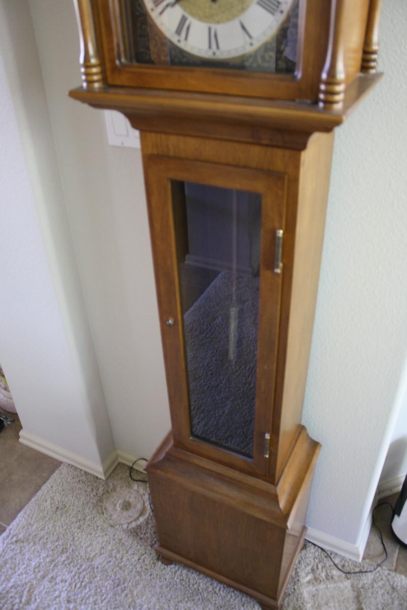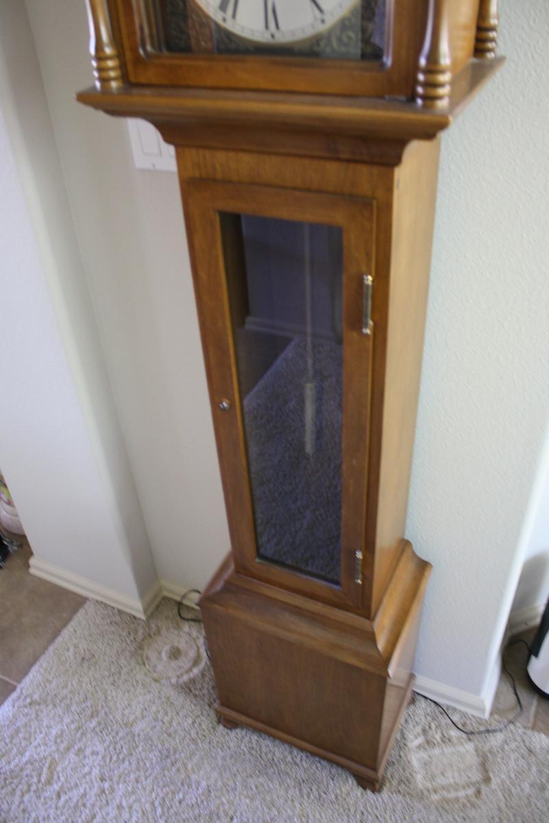 Nice condition Daneker Grandmother clock. Part of collection. All were running previously. Unless noted, all have keys or winders as necessary. LOCAL PICKUP ONLY, ALBANY OREGON