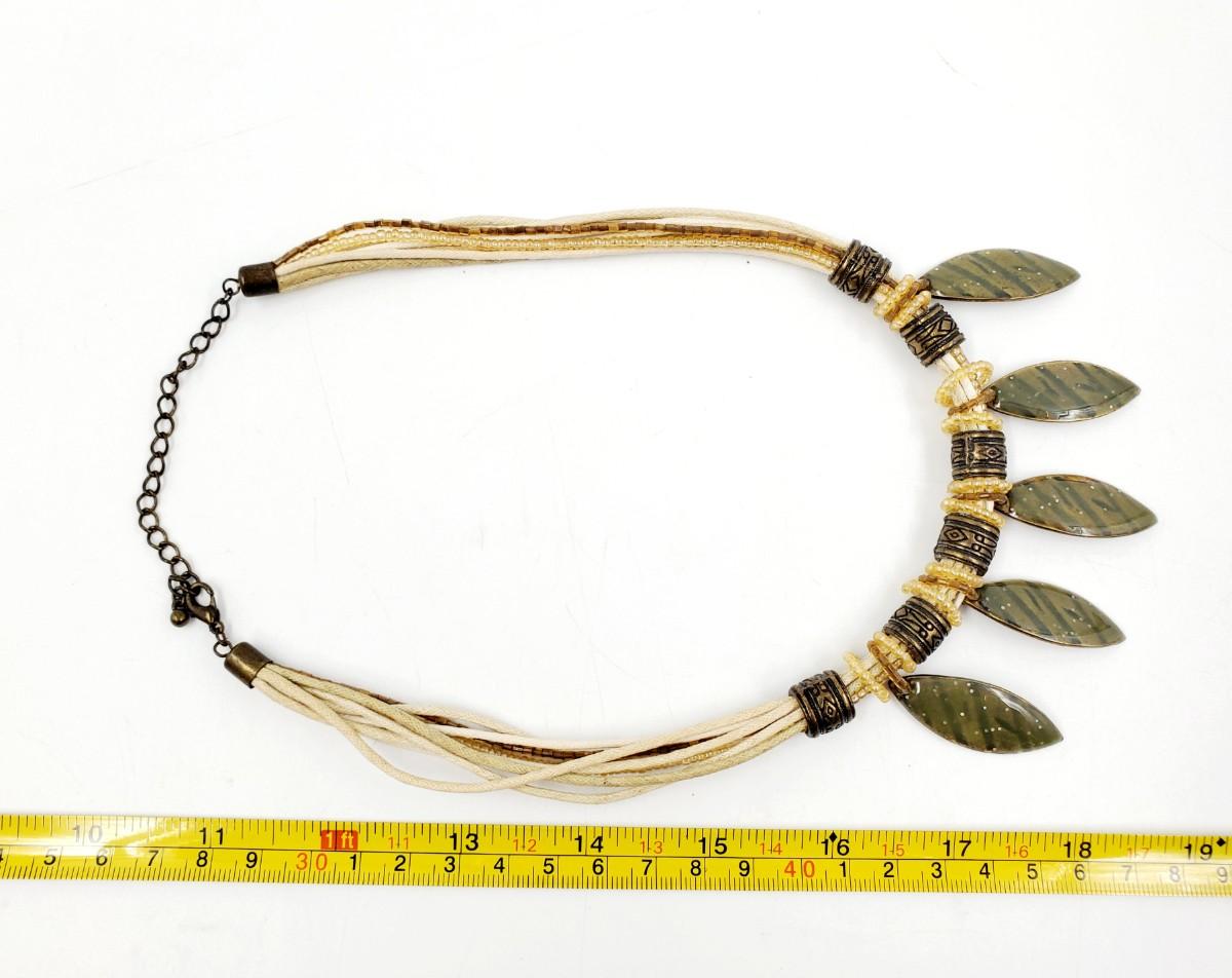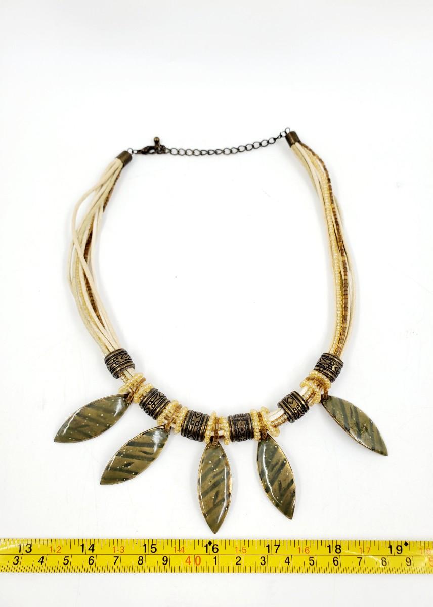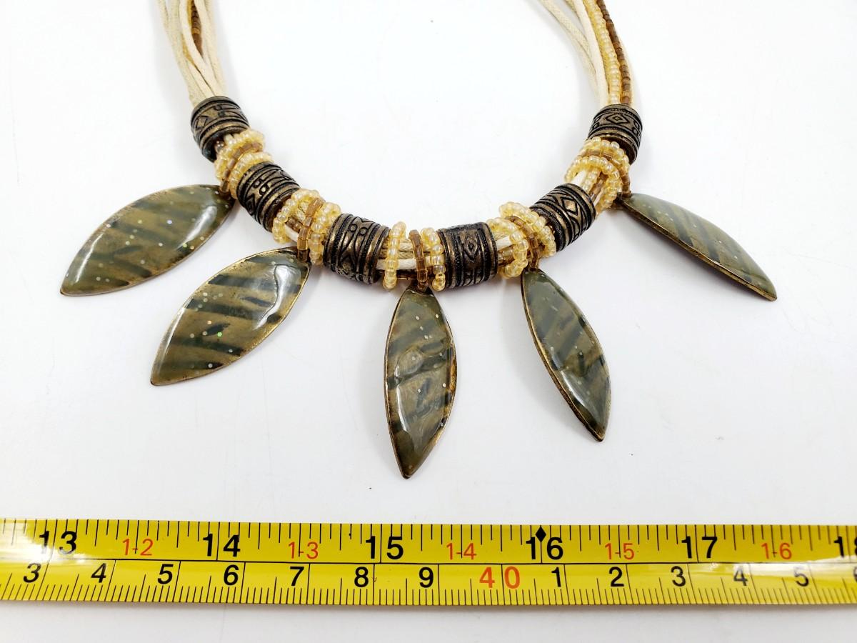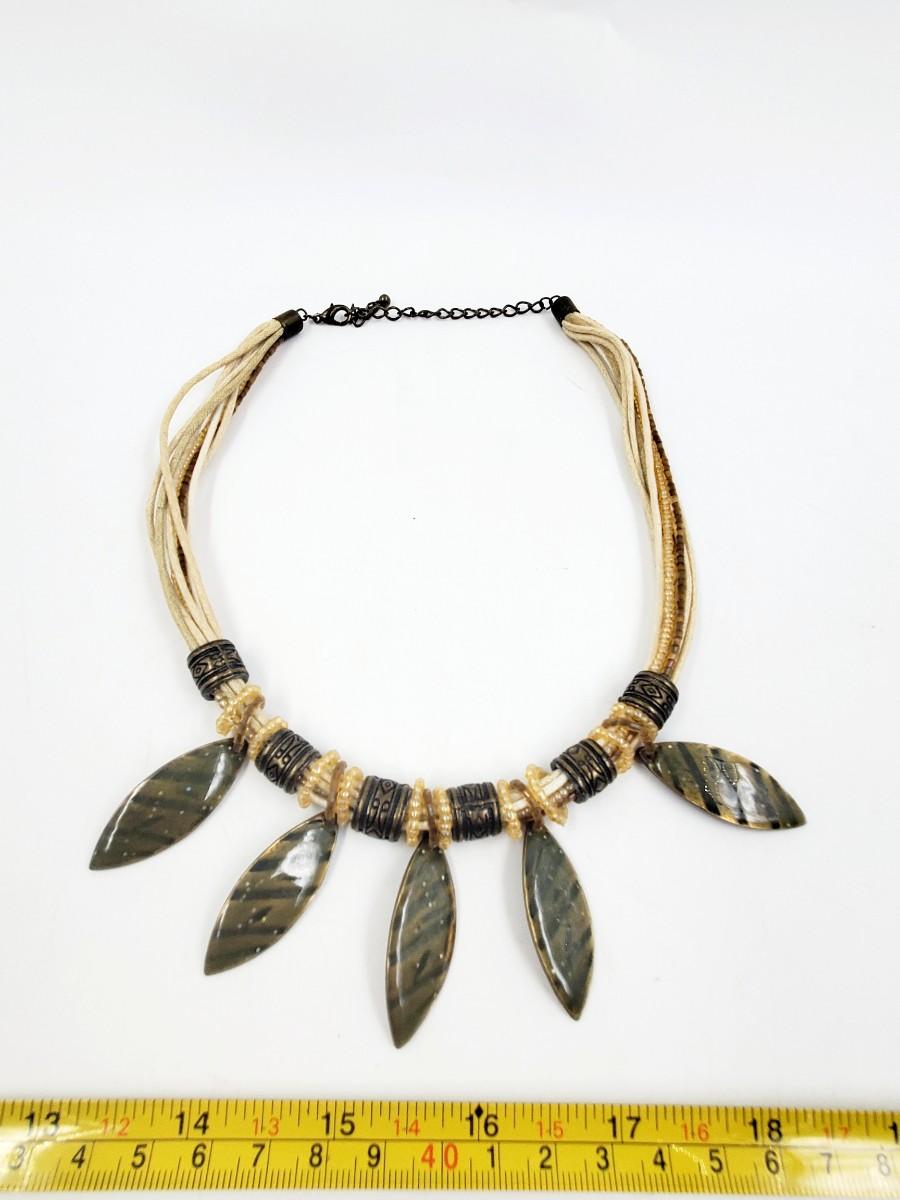 Approximately 18in long, good condition. Nice earth tones and metal beads.