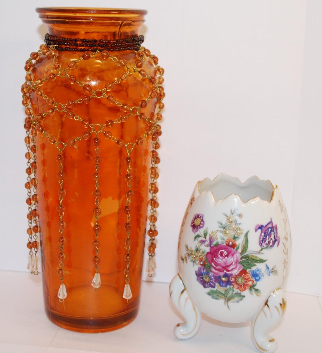 Dangle Orange Vase (10"H) & Egg Shaped Planter (5"H)