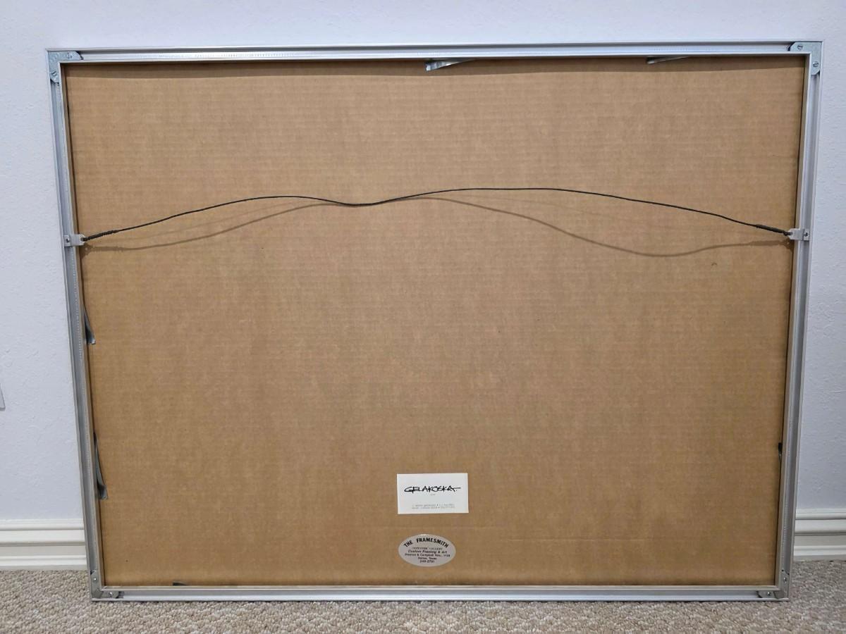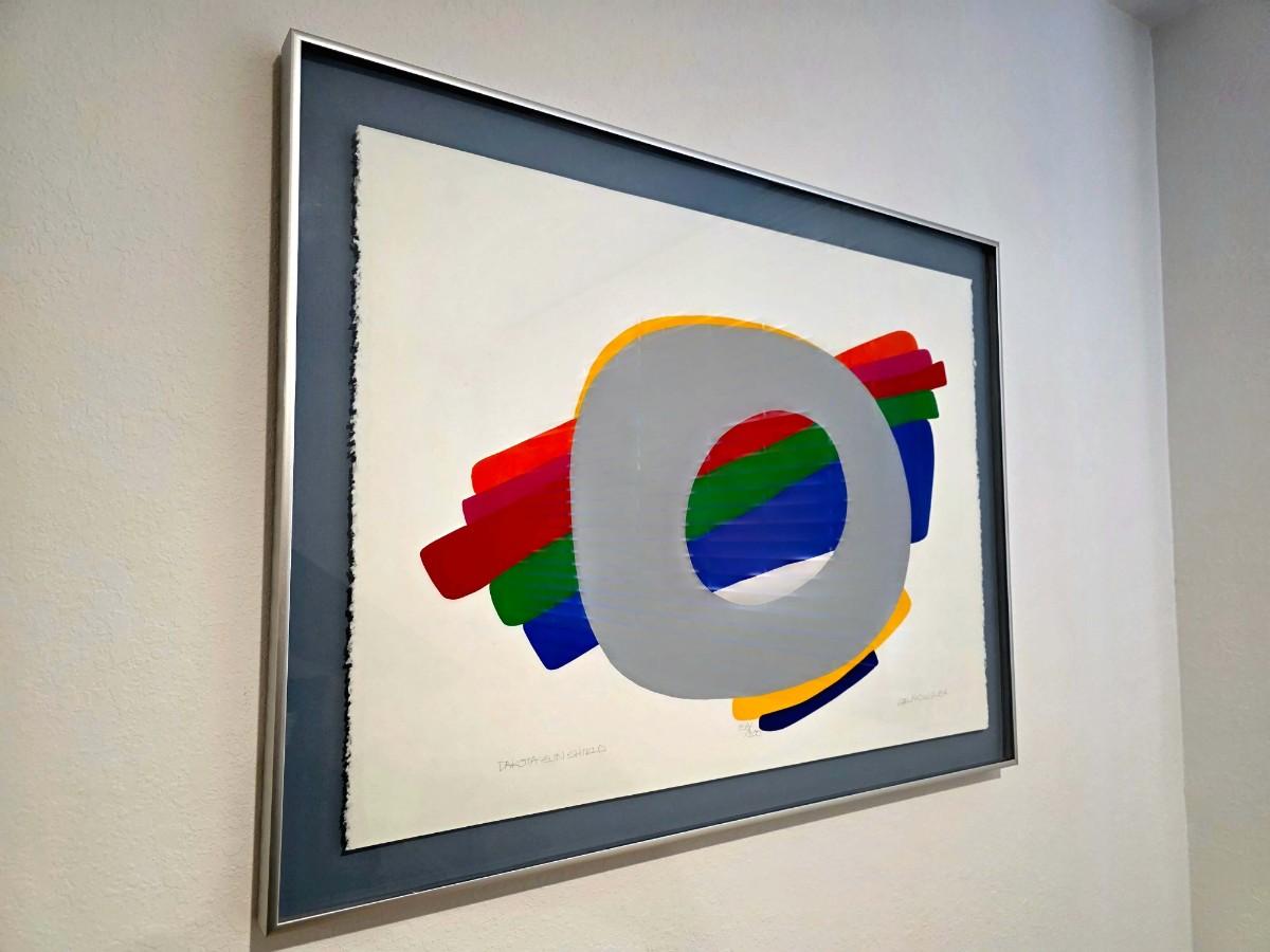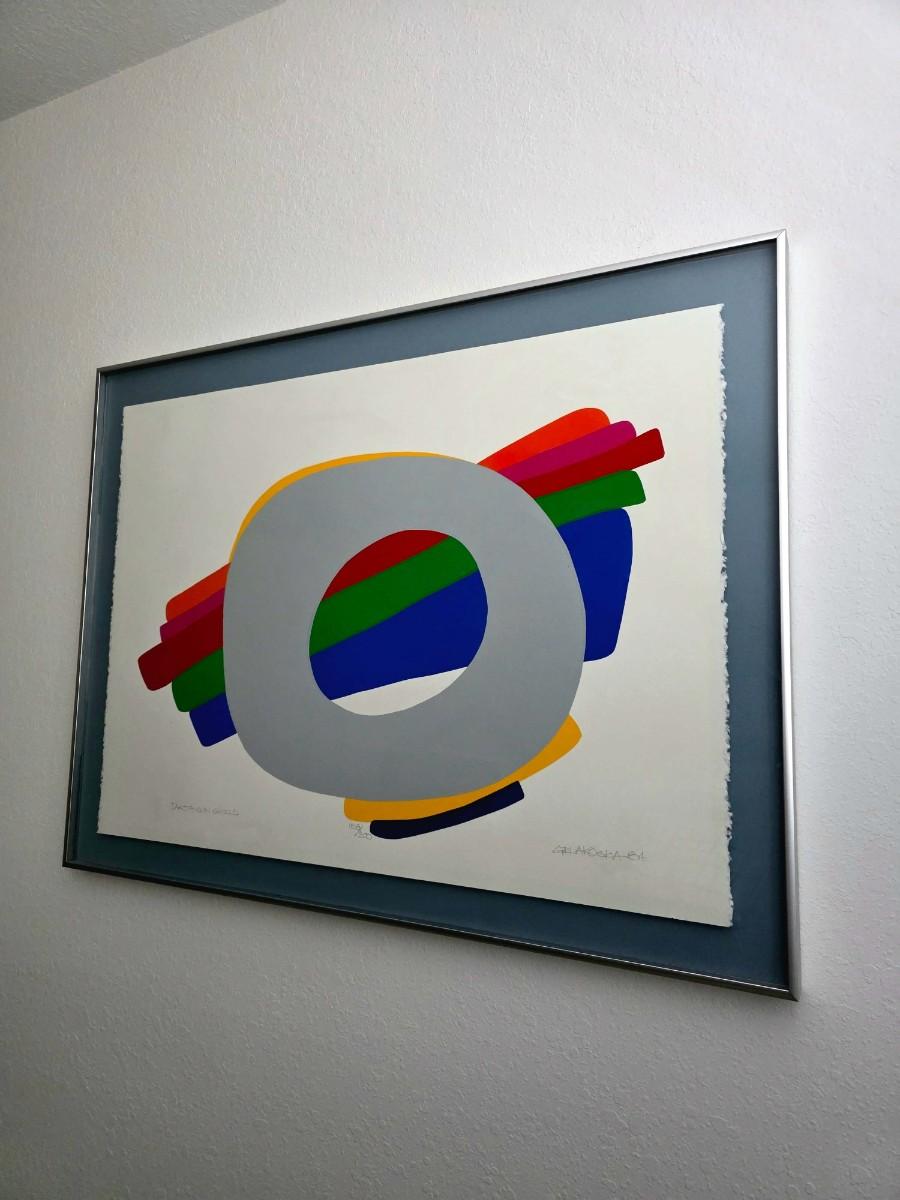Vibrant contemporary abstract serigraph/print by Serbian American postmodern artist, Daniel Gelakoska (1944/5-2015) "Dakota Sun Shield" 1984 signed and numbered 158/200 professionally framed. Gelakoska graduated from Kendall College of Art and Design in Grand Rapids, MI and later moved to Denver, CO where he opened his gallery in 1970. His art has been showcased throughout the USA and abroad.