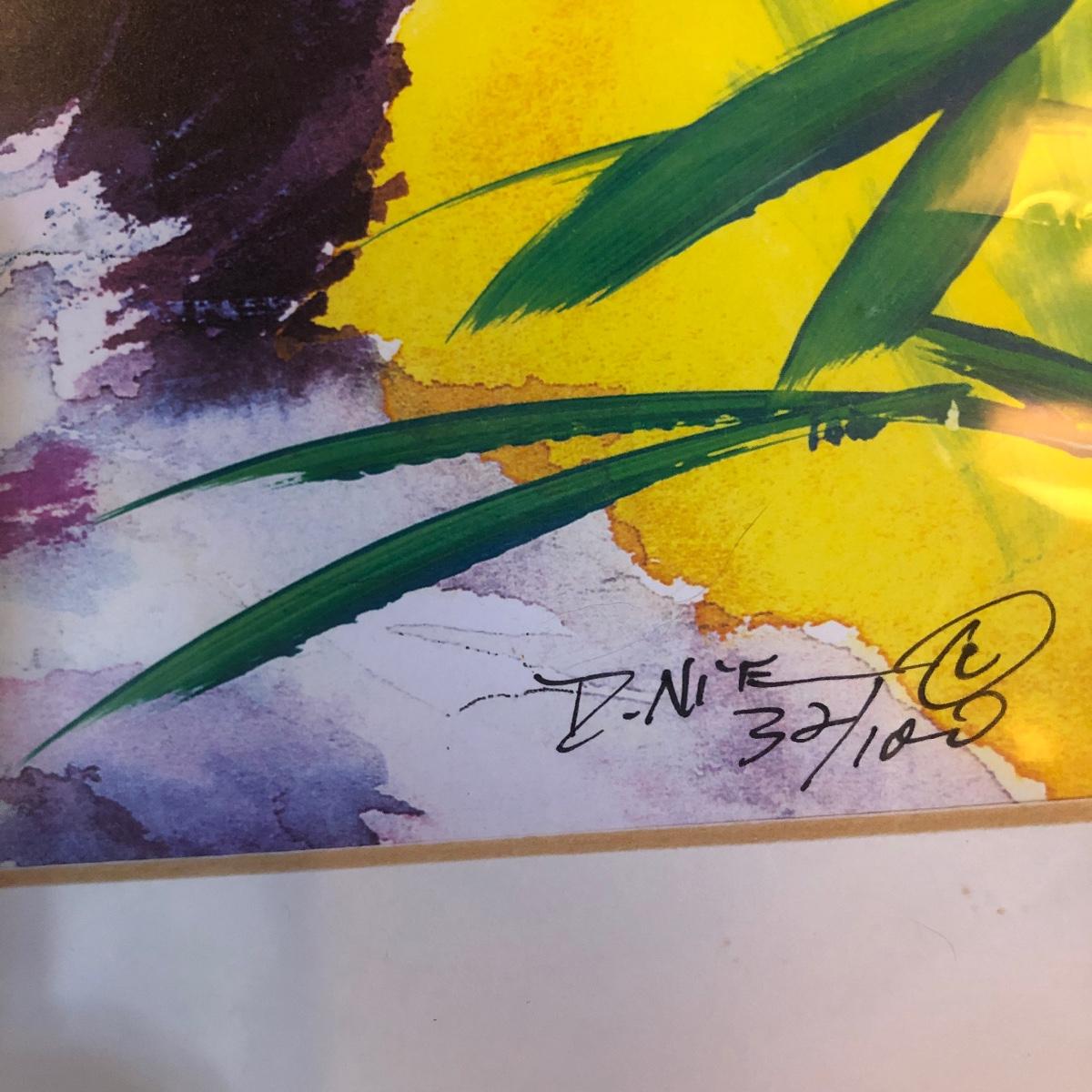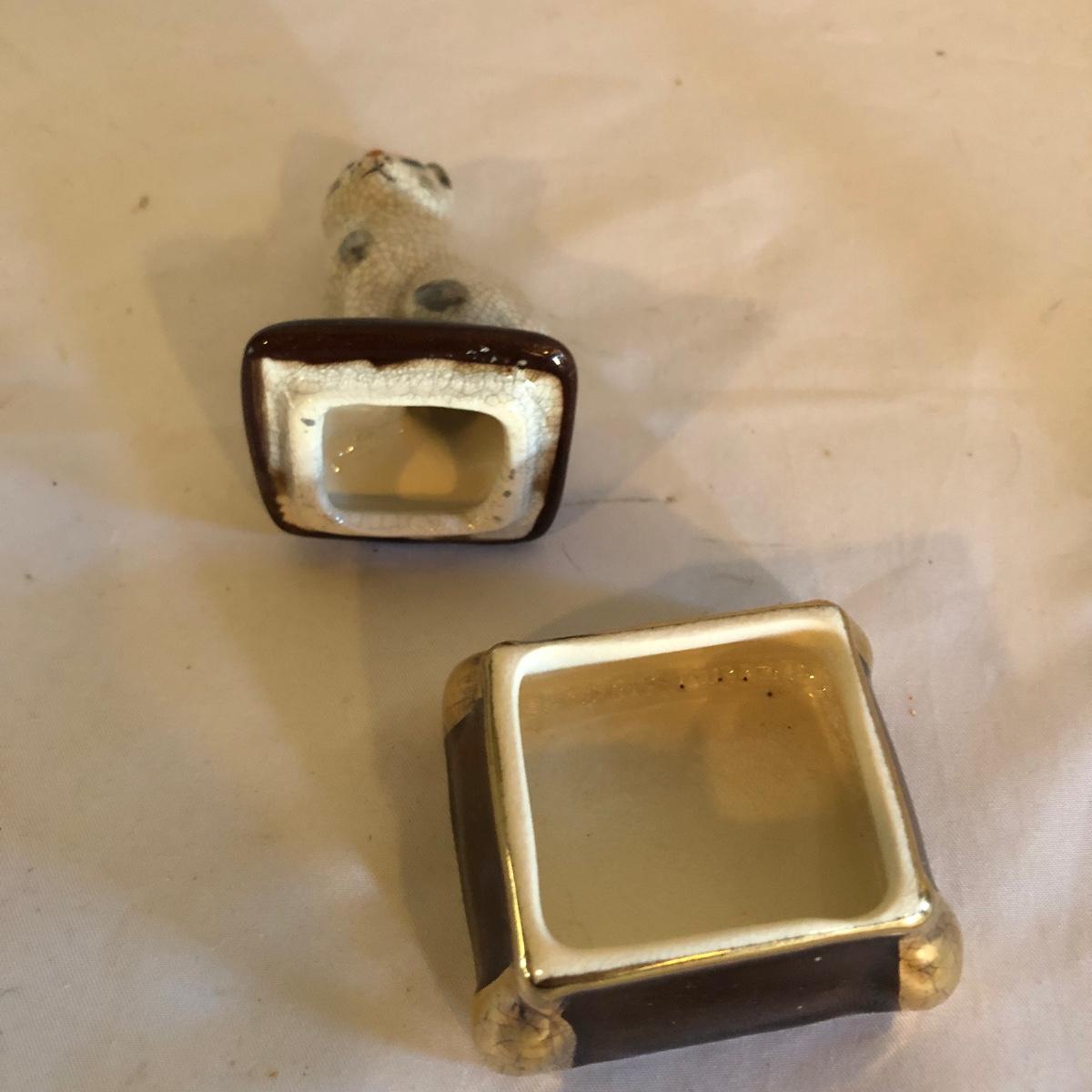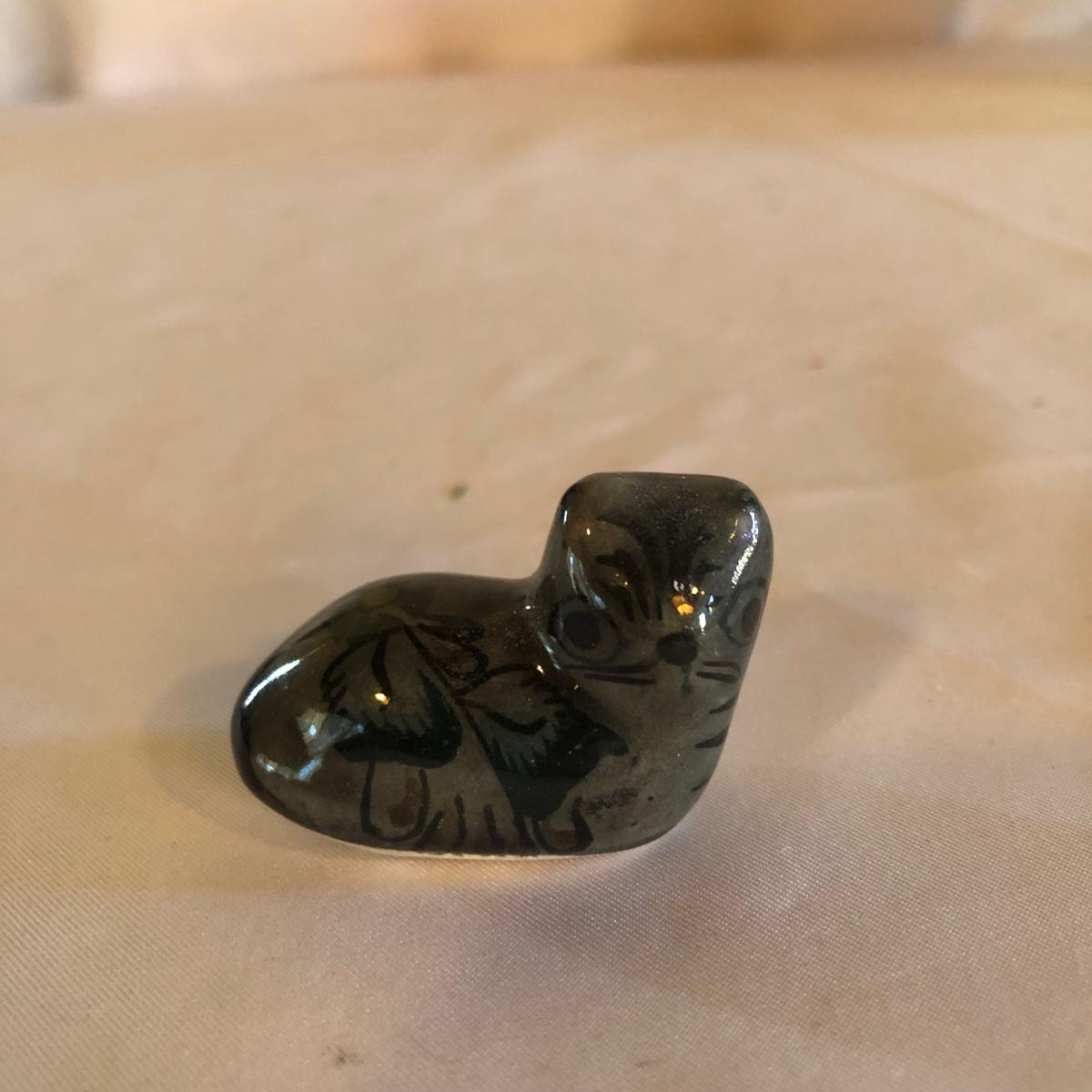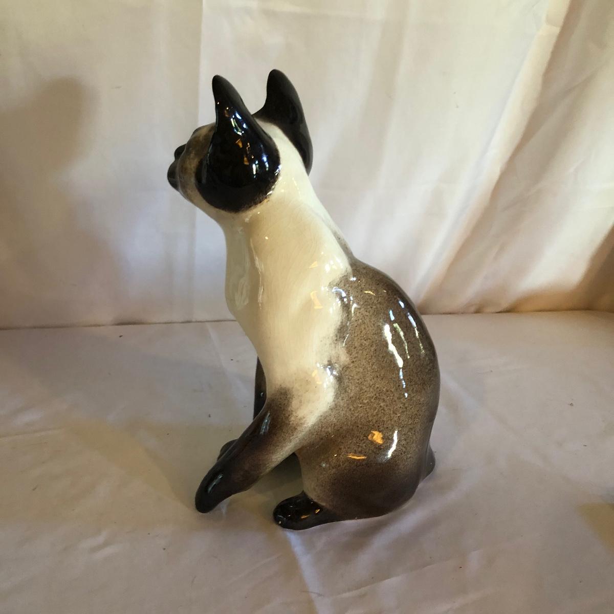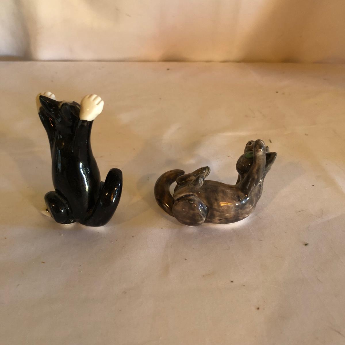 Lot includes Daniel Nie signed and numbered print, two signed Smallwood ceramic cats, Takakashi ceramic cat box and a ceramic cat made in England from Saks Fifth Ave.