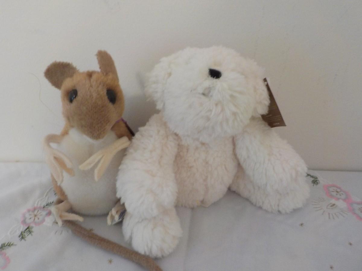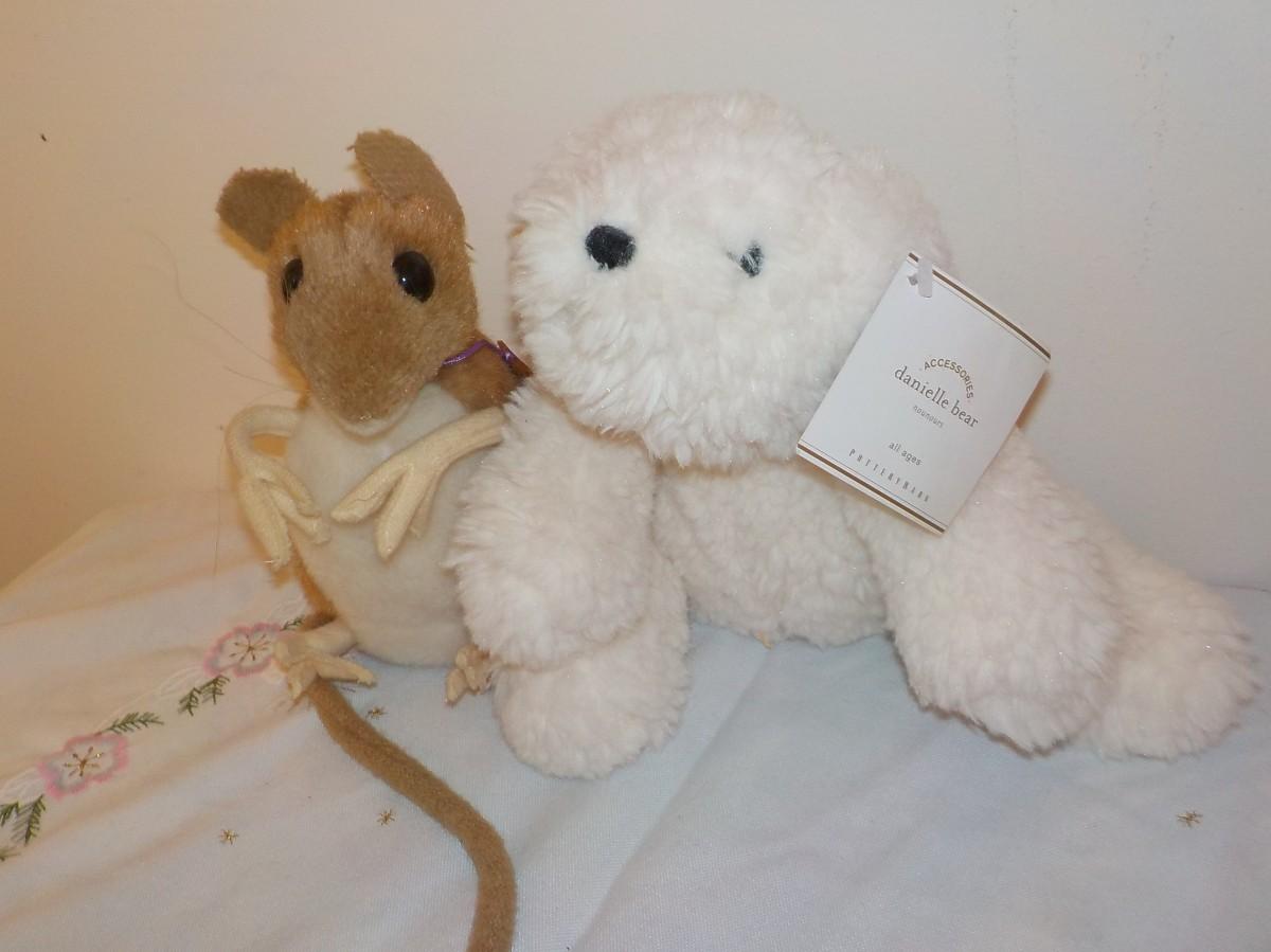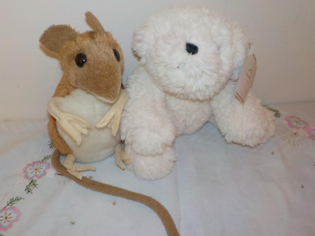 Both are late 1980's, White bear is snow white and 8 in. and the mouse is 8 in. crafted and numbered by Charleen Kinser.