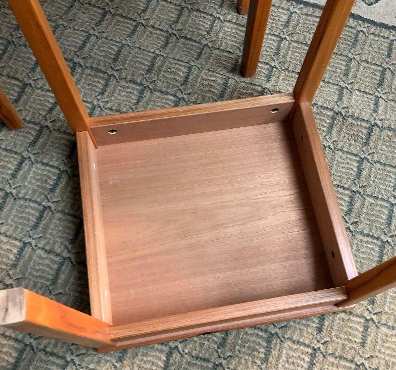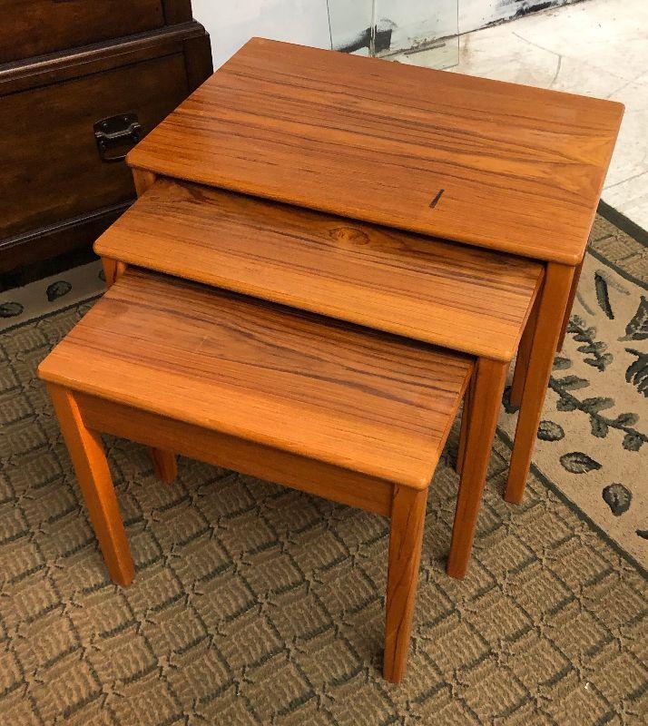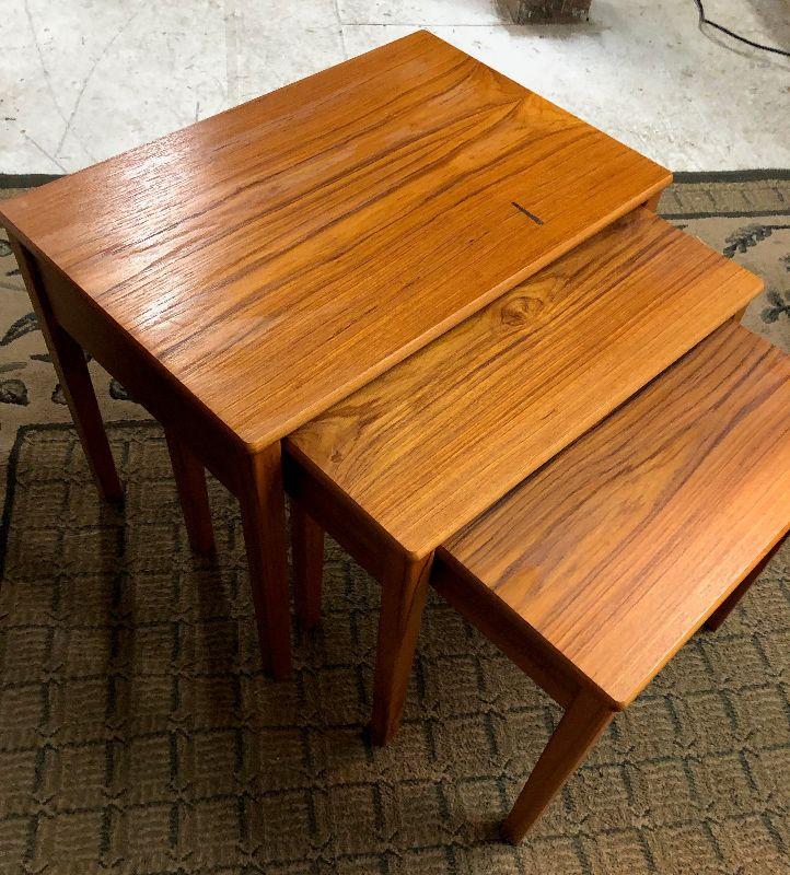 Here is a set of three Danish Modern nesting tables....One defect on top...(pictured)...