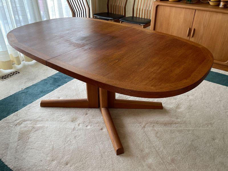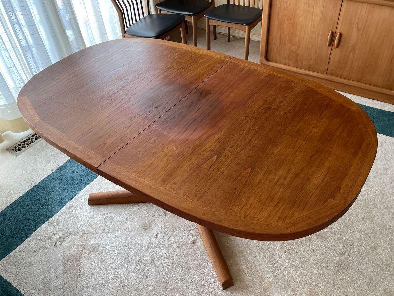 Nice Danish Modern Oval Teak Dining Table 2 Leaves