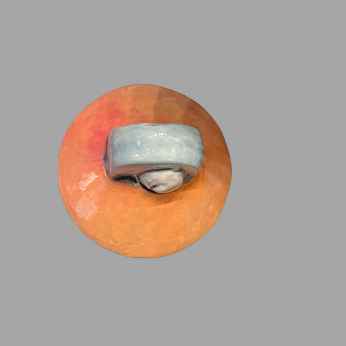 This item was sculpted by Danisha while in Mexico. It is a ceramic piece and she is famous for blending classical with whimsical.