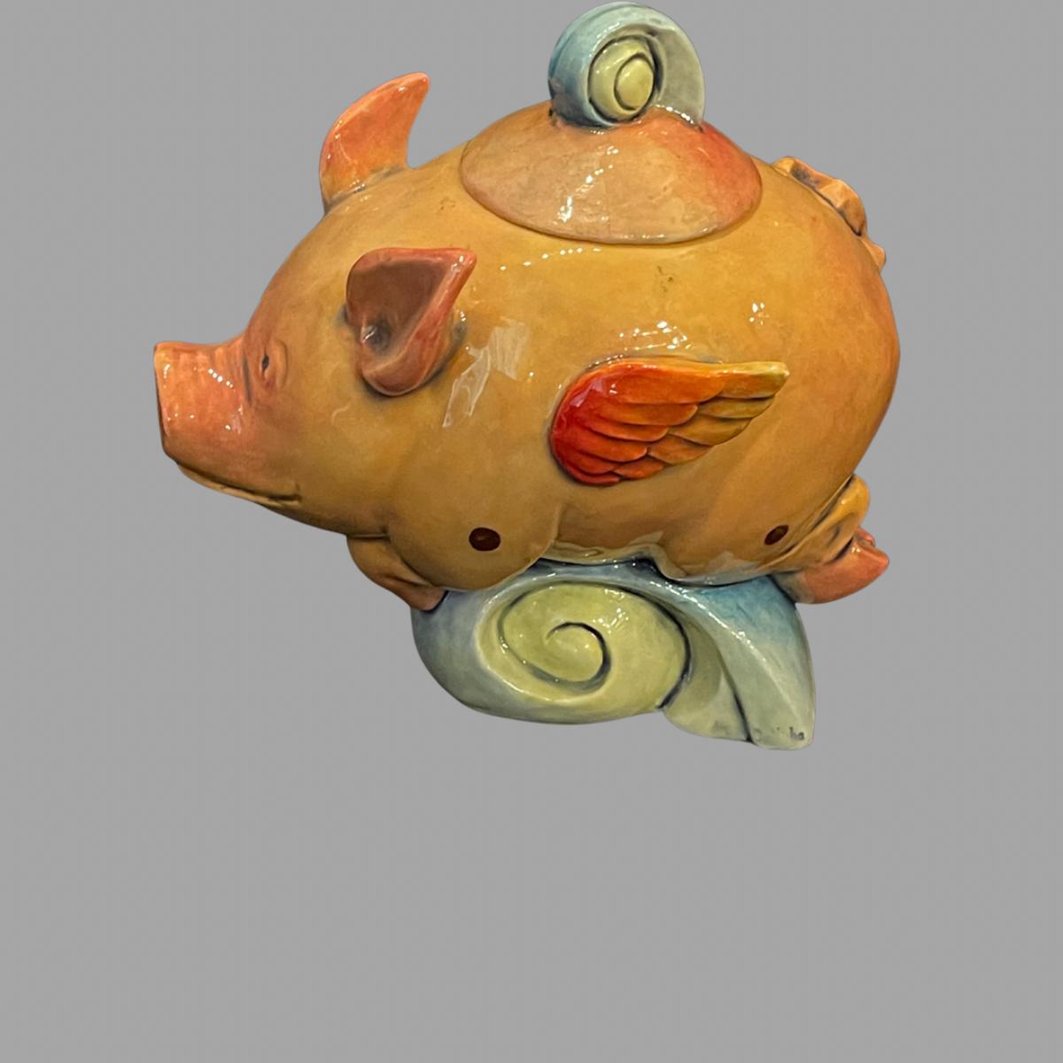 Danisha Flight of the Fancy Pig with Lid Sculpture - Numbered - 5"