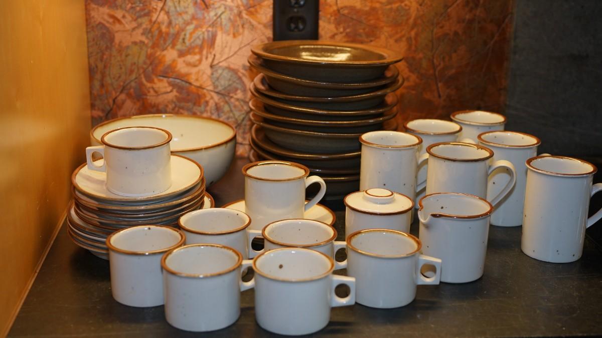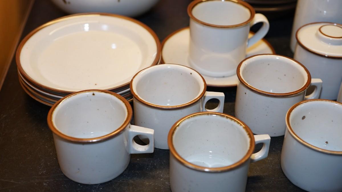 DANSK " BROWN MIST" COFFEE SET PLUS NINE ROWE POTTERY BROWN GLAZE BOWLS