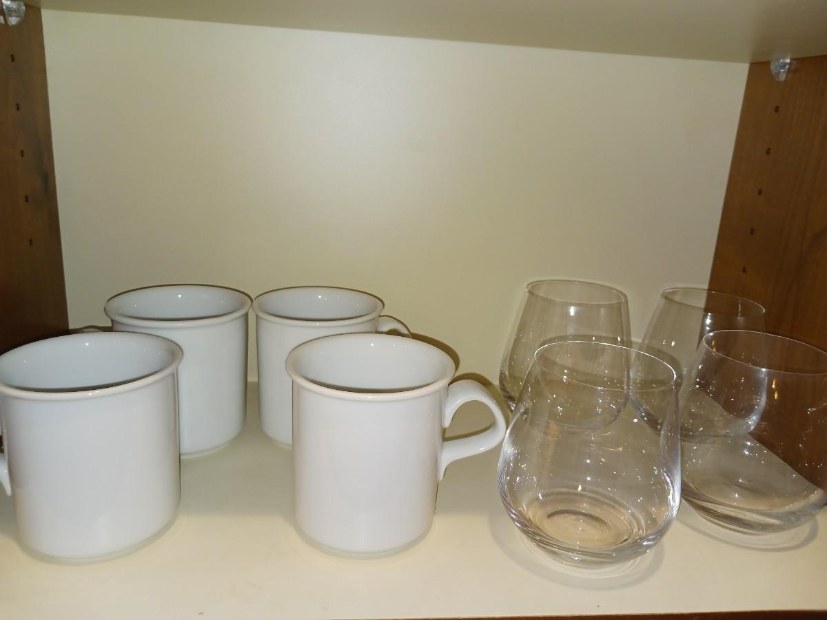 DANSK COFFEE MUGS, BALL CANNING JARS AND DRINKING GLASSES