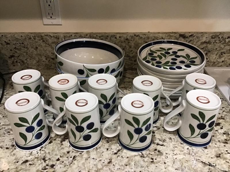 Dansk set of 9 mugs- 4.5” tall, 2 Large bowls-8.5” round and 8 plates-8” around. Beautiful set.