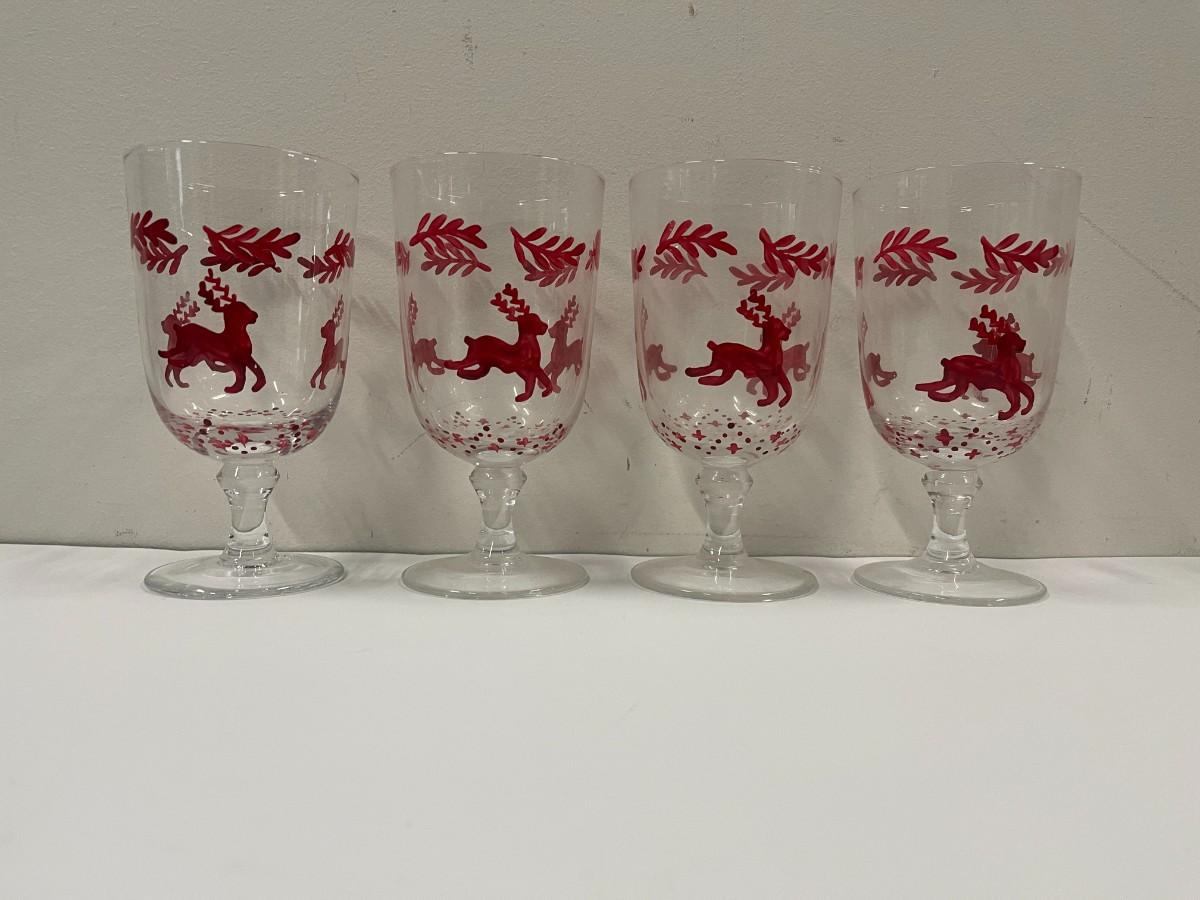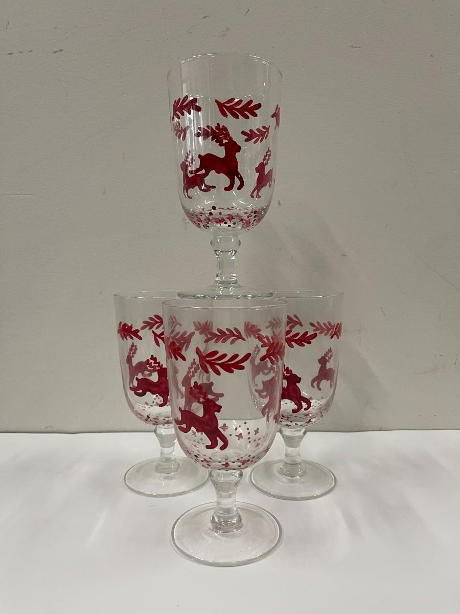 Dansk Nordic Knits Red Reindeer Goblets, Set of 4