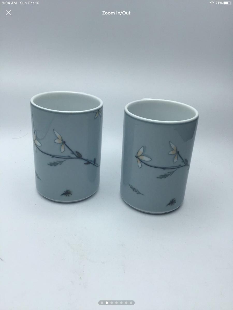 Set of 2; Light Blue & White; Each one measures 4" tall and 2 3/4" in diameter.