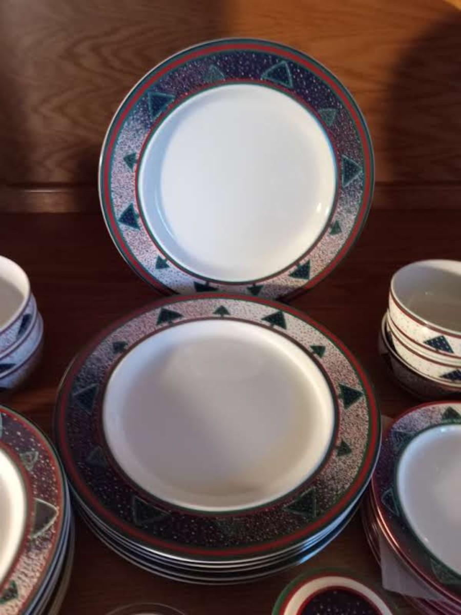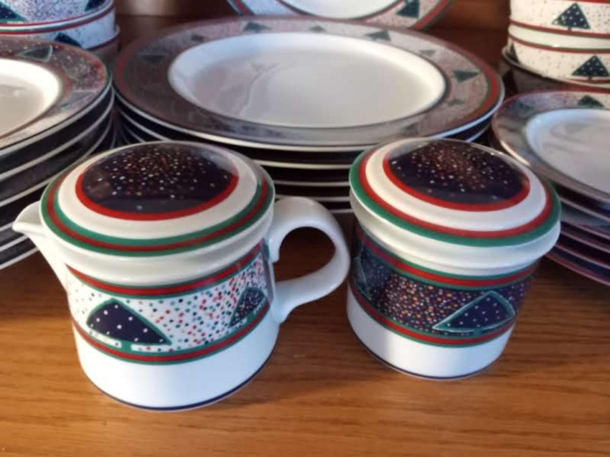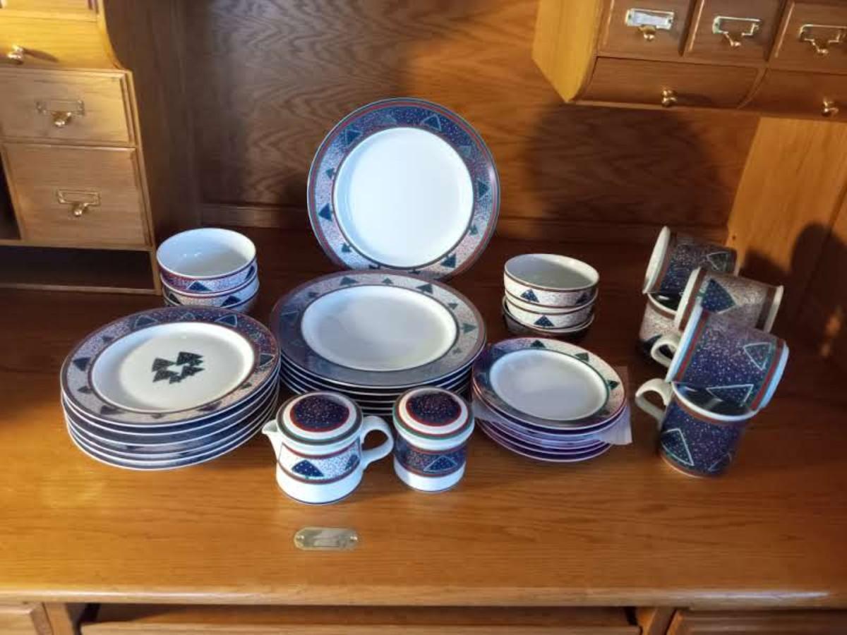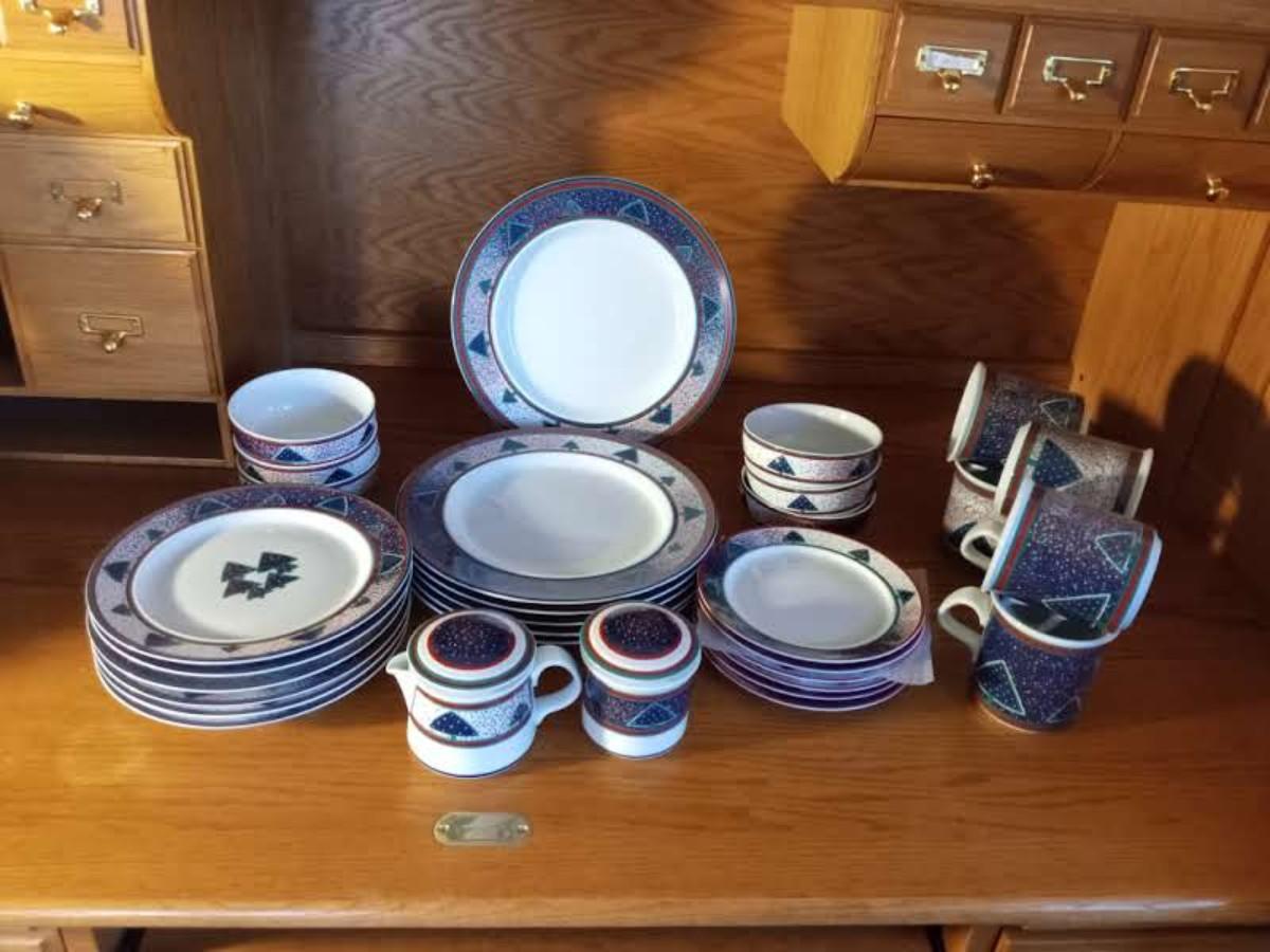 6 PLACE SETTING INCLUDES DINNER AND SALAD PLATE, BOWL, COFFEE CUP AND SAUCER. THIS LOT ALSO INCLUDES A CREAM AND SUGAR SET