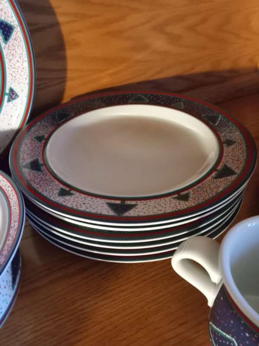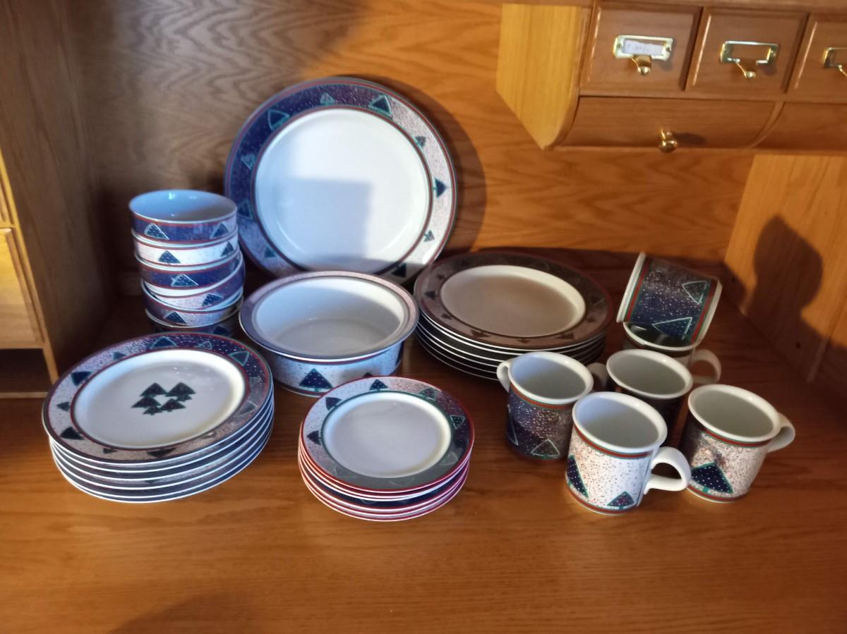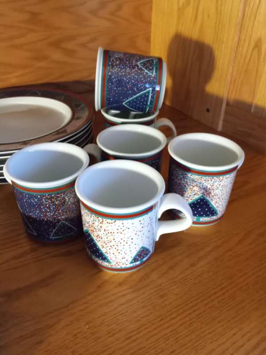 6 PLACE SETTING INCLUDES DINNER PLATE, SALAD PLATE, BOWL COFFEE MUG AND SAUCER