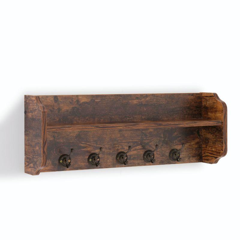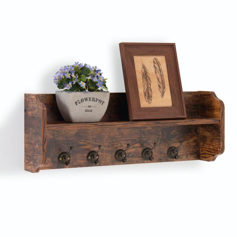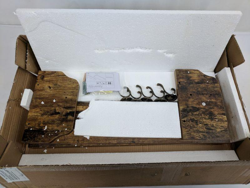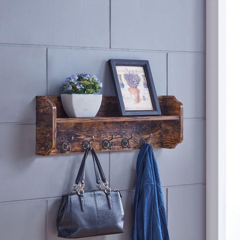 Danya B. Utility Wall Shelf with Hooks - Aged Wood, Missing 2 Mounting Screws