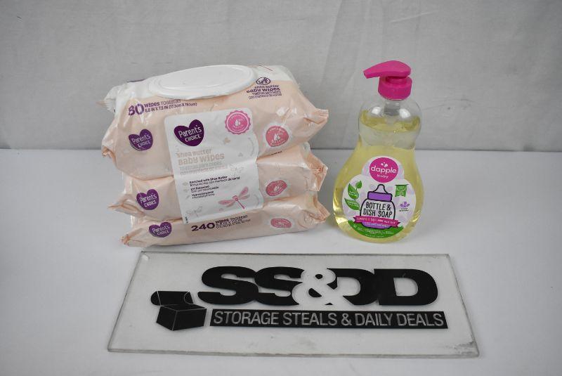Dapple Baby Bottle & Dish Liquid & Parent's Choice Shea Butter Baby Wipes - New