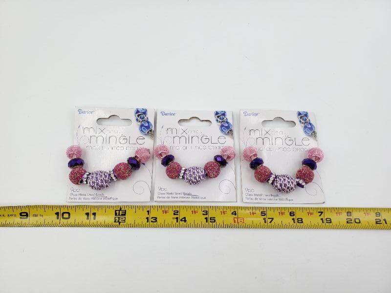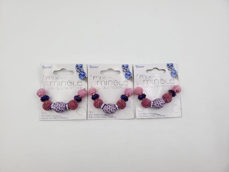 3 unopened packages of Darice glass metal lined beads packages, pink and fuchsia