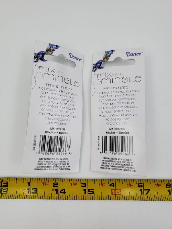 2 unopened packages, glass metal lined beads, gray and white