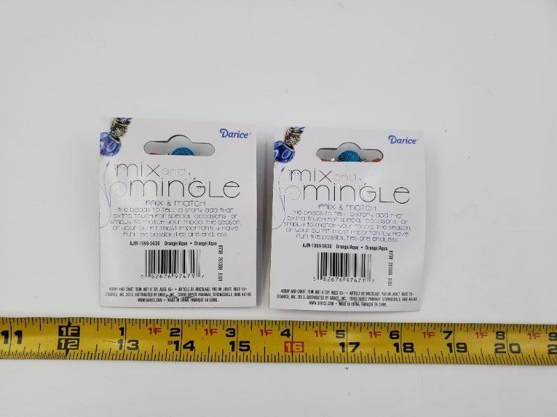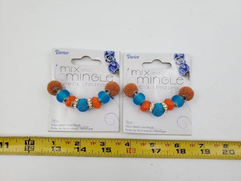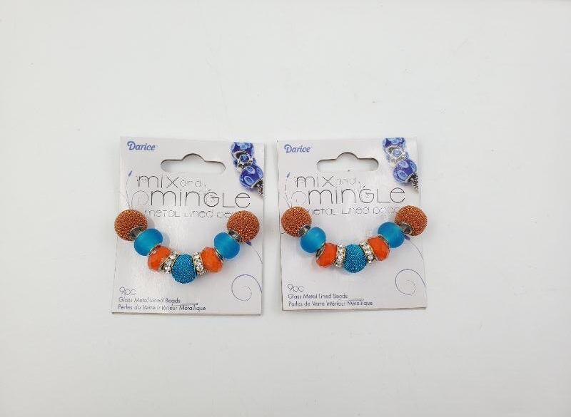 2 unopened packages, Darice glass and metal beads, orange/aqua