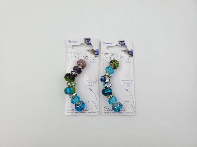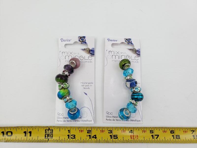 2 unopened packages Darice glass metal lined beads, mix and mingle